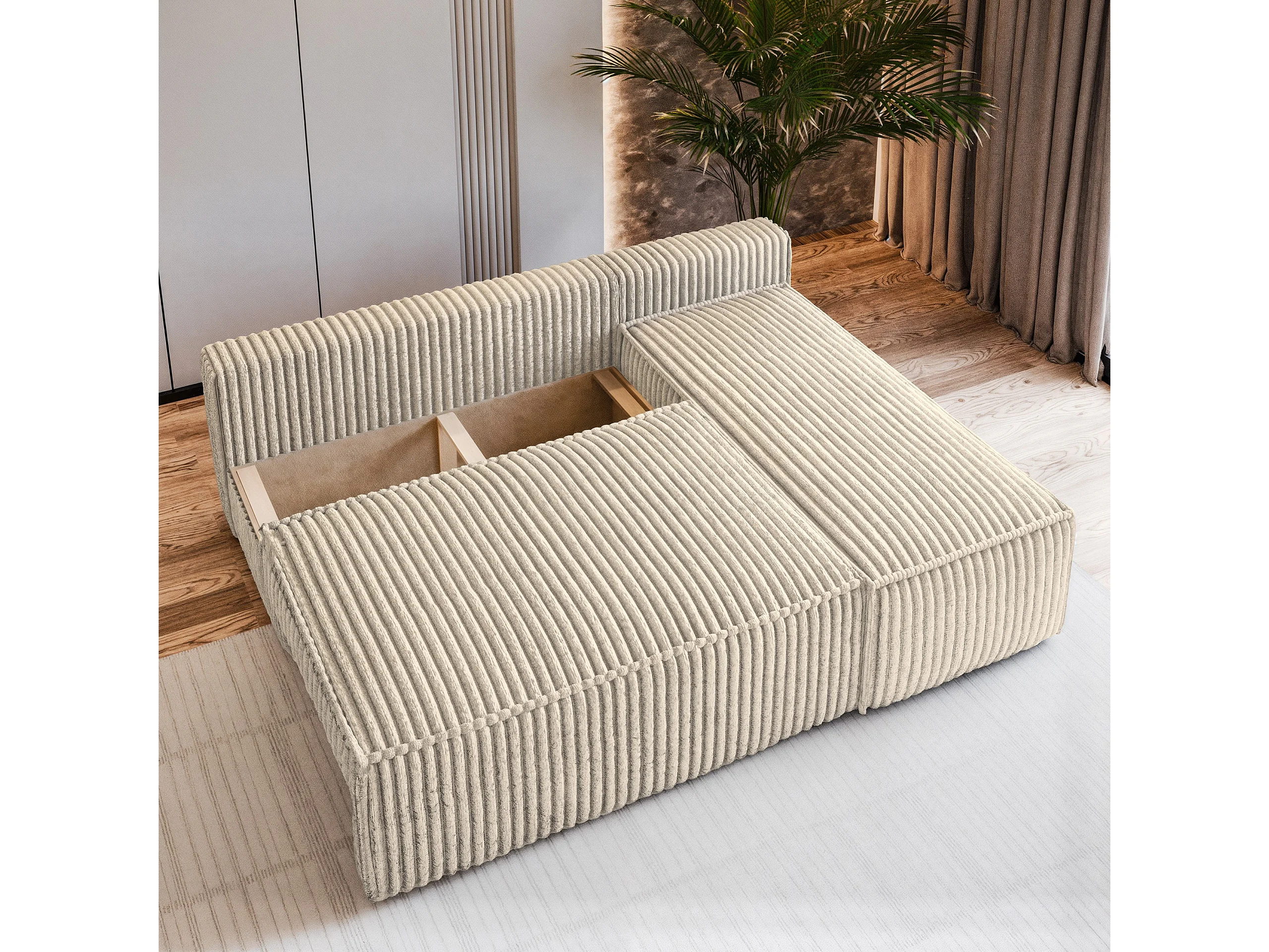 Canapé d'angle BRISO Crème en velours côtelé avec fonction de couchage
