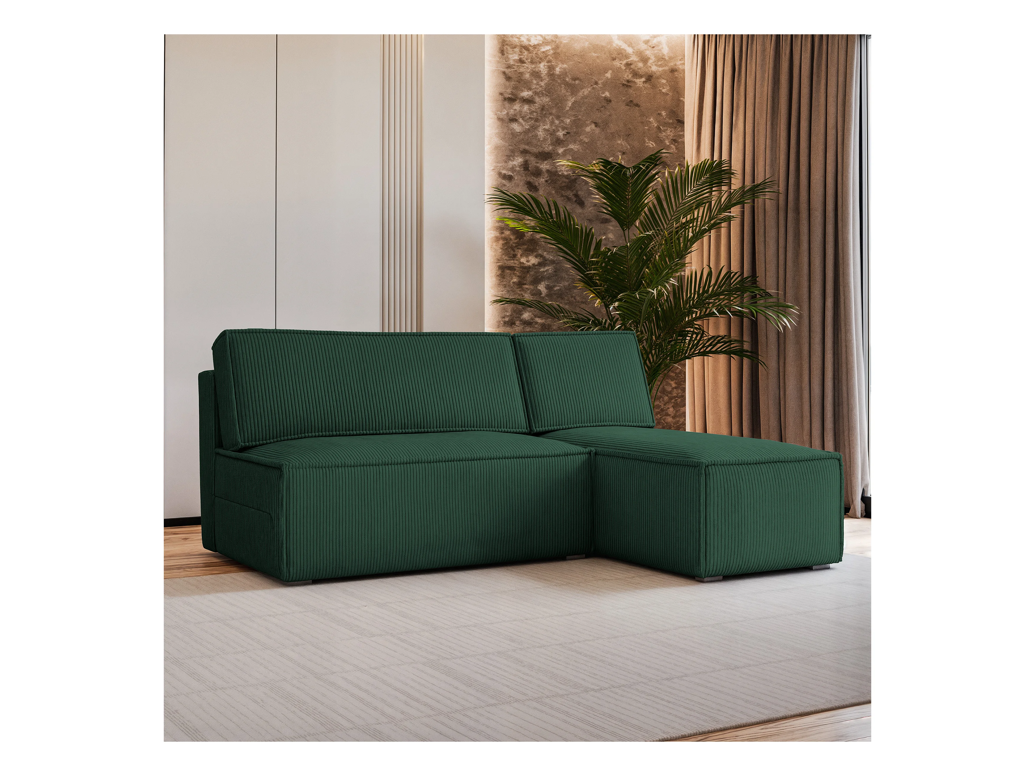 Canapé d'angle BRISO Vert Sapin en velours côtelé avec fonction de couchage