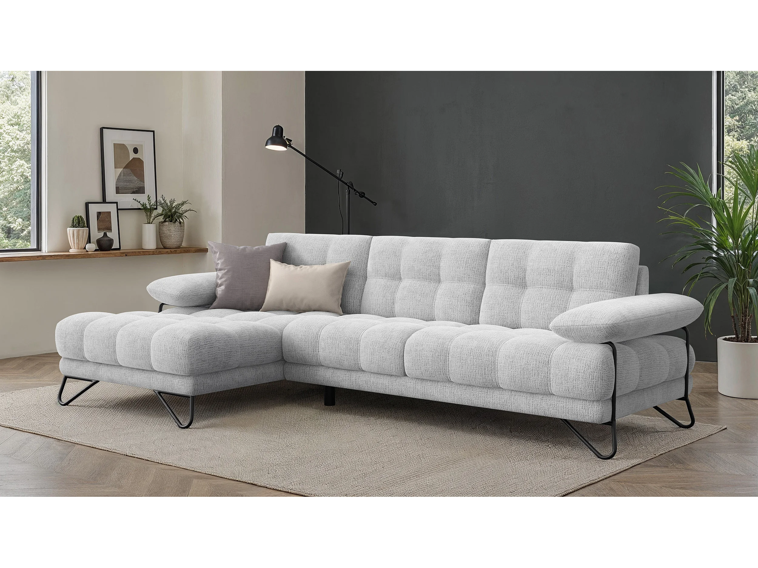 CANAPÉ D'ANGLE BUBBARA 4 places, tissu blanc