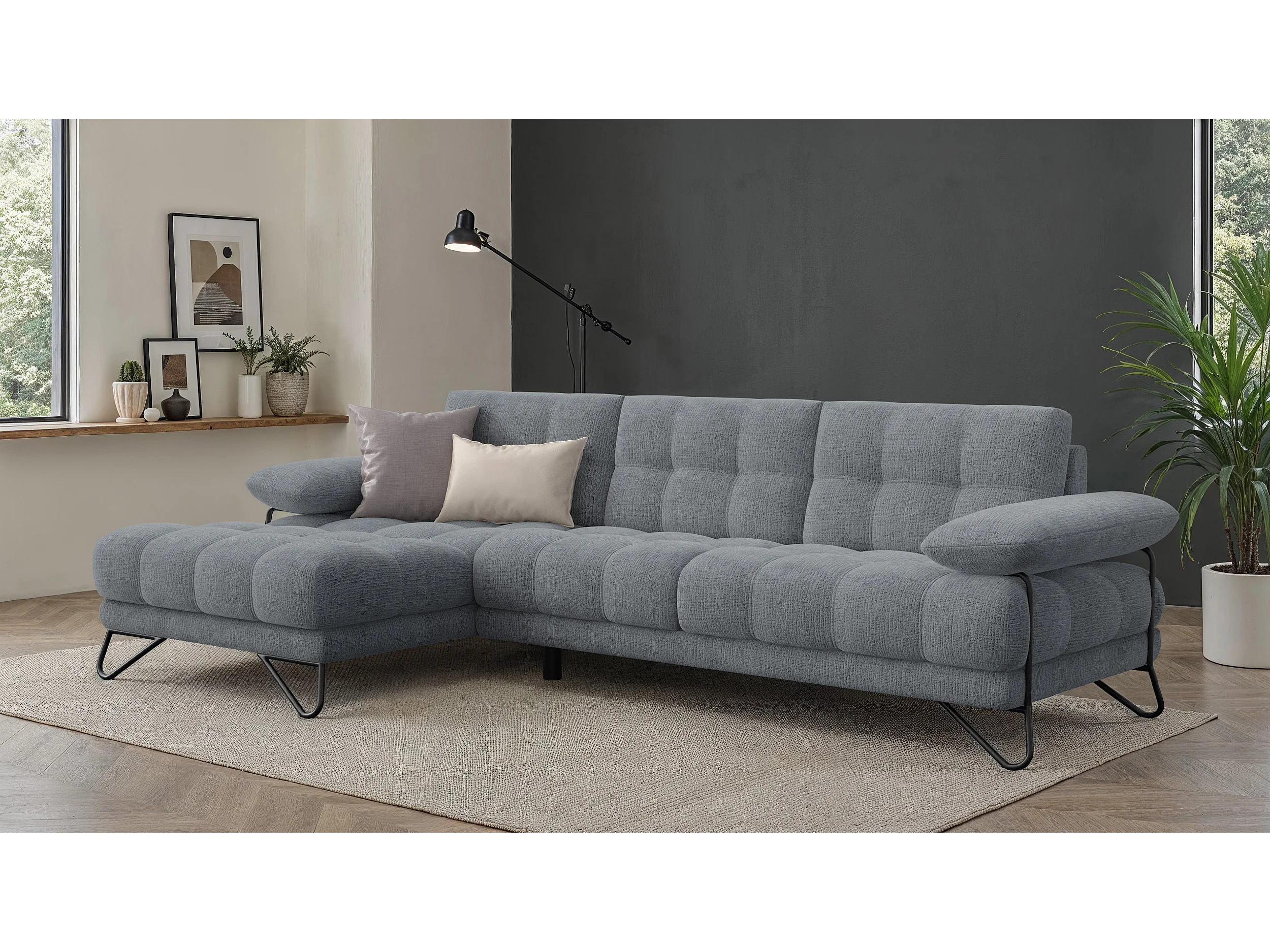 CANAPÉ D'ANGLE BUBBARA 4 places, tissu gris foncé
