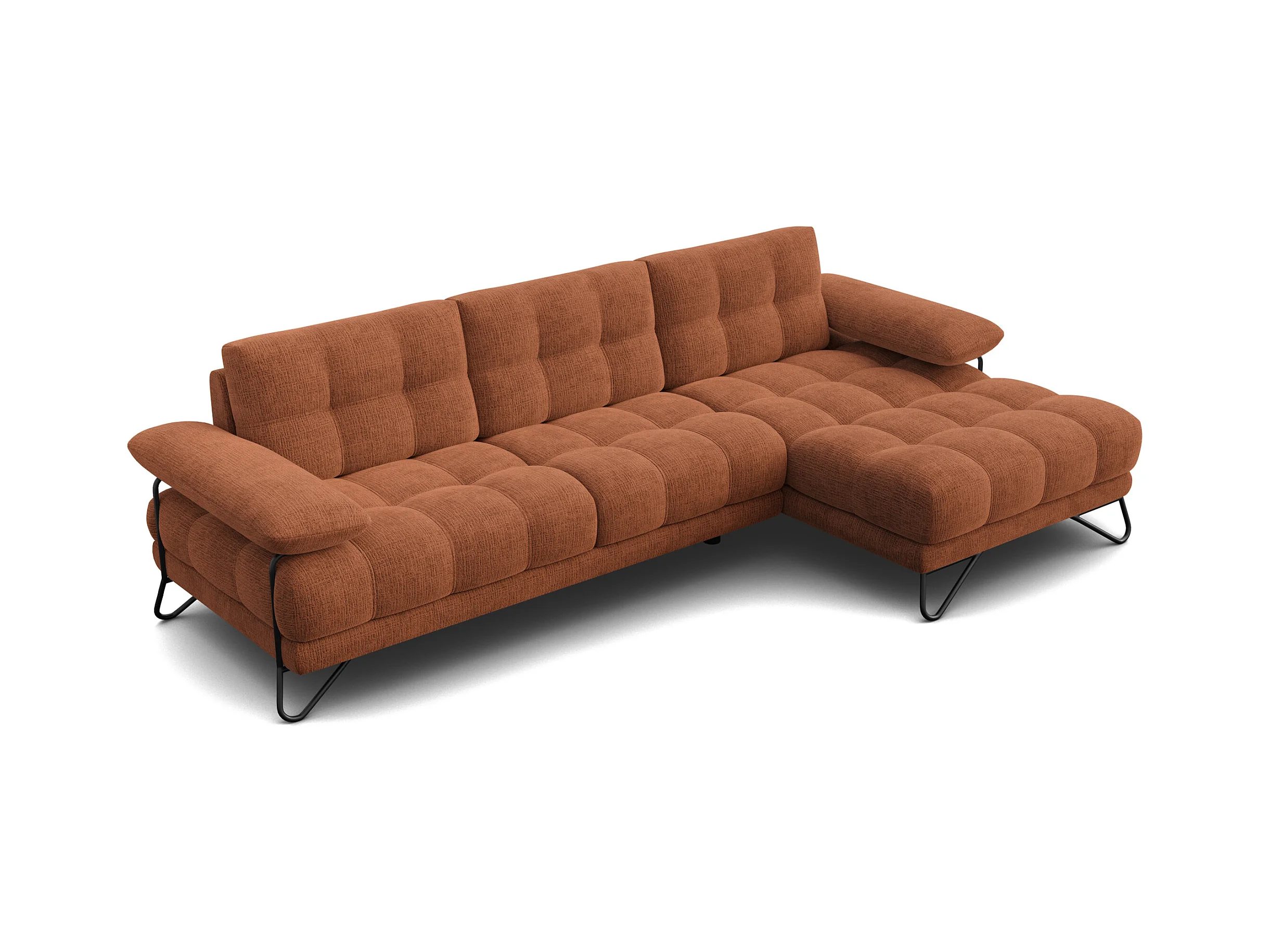 CANAPÉ D'ANGLE BUBBARA 4 places, tissu orange