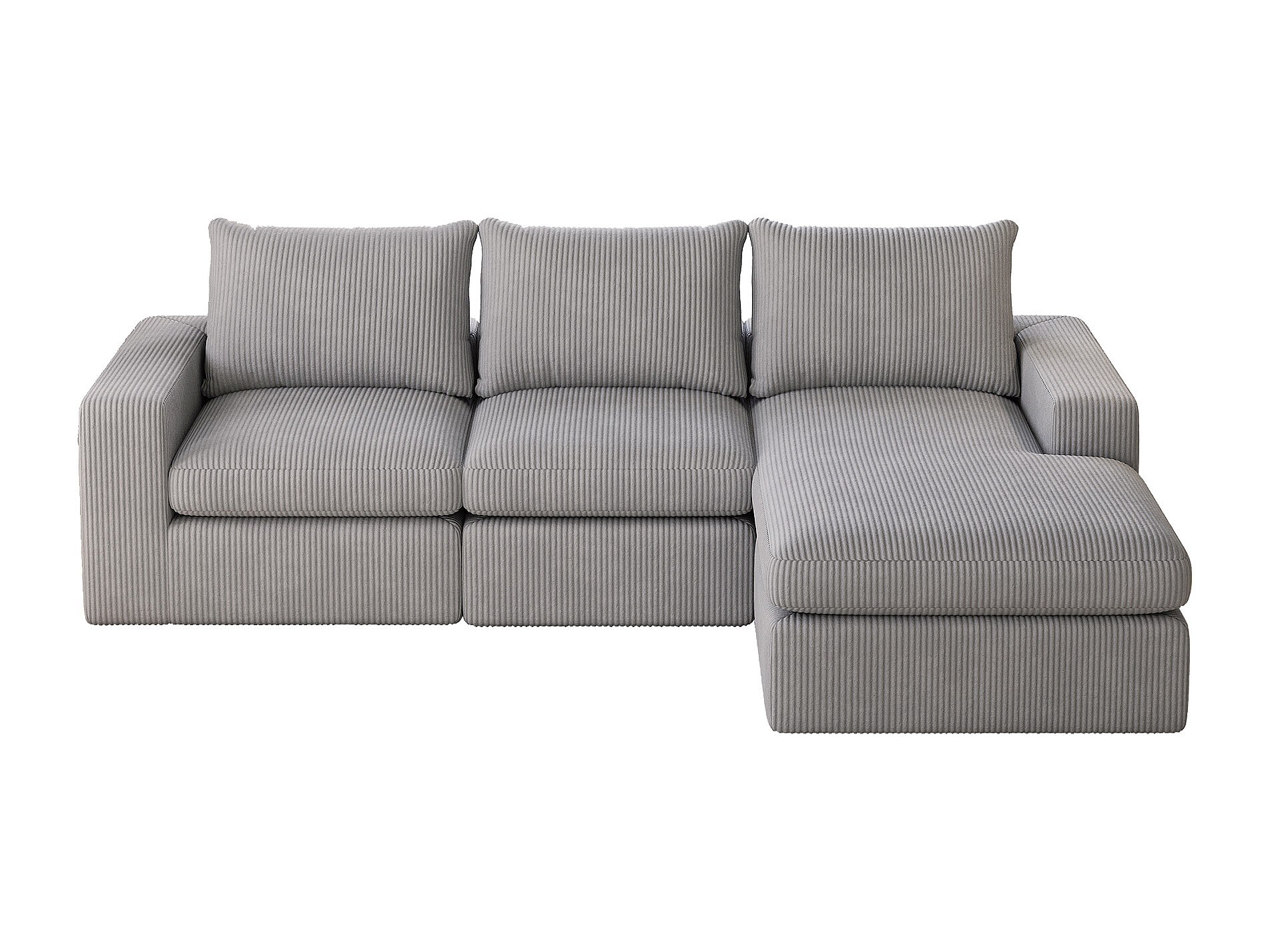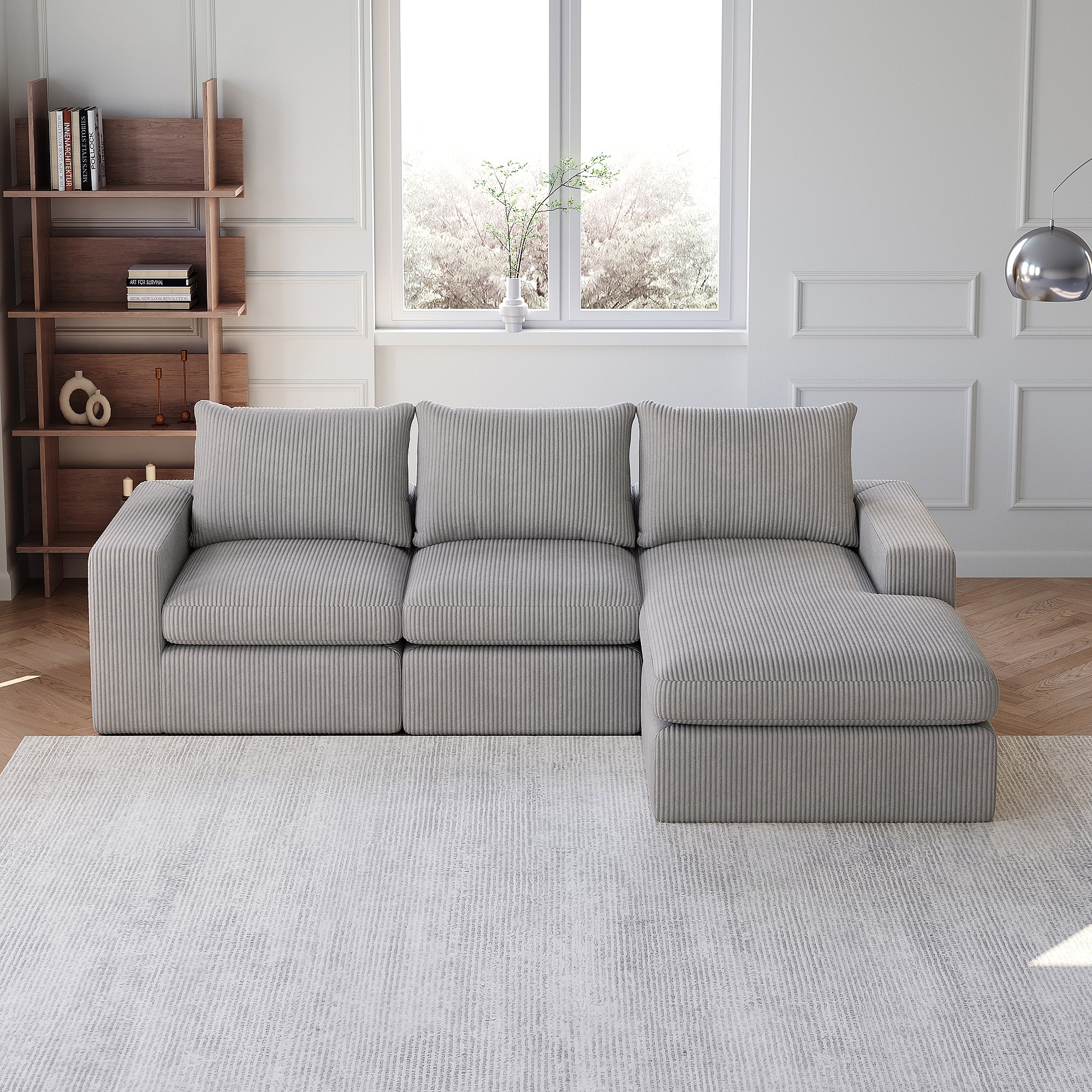 Canapé d'angle - Canapé 3 places avec trois coussins et accoudoirs - velours côtelé gris clair