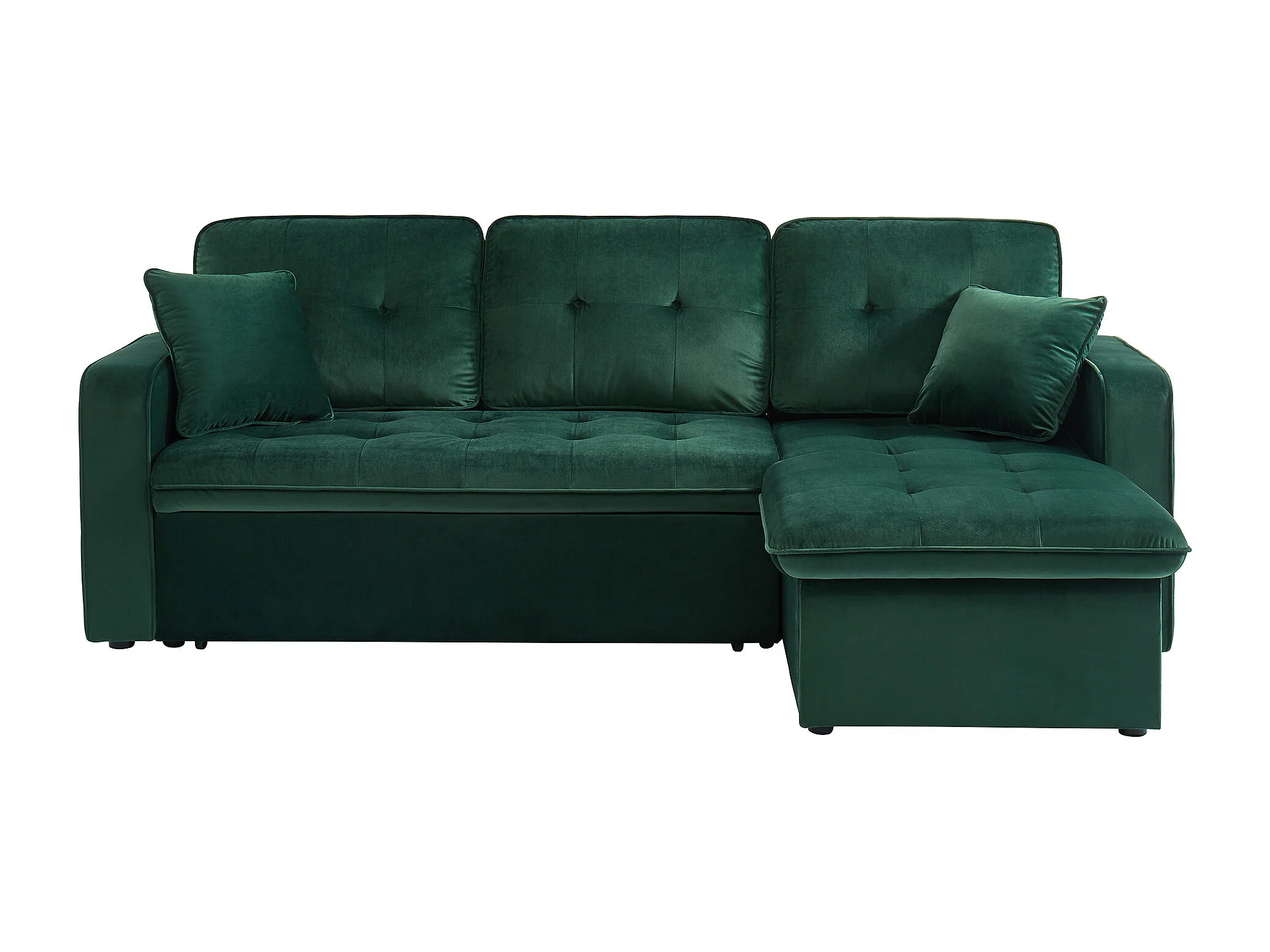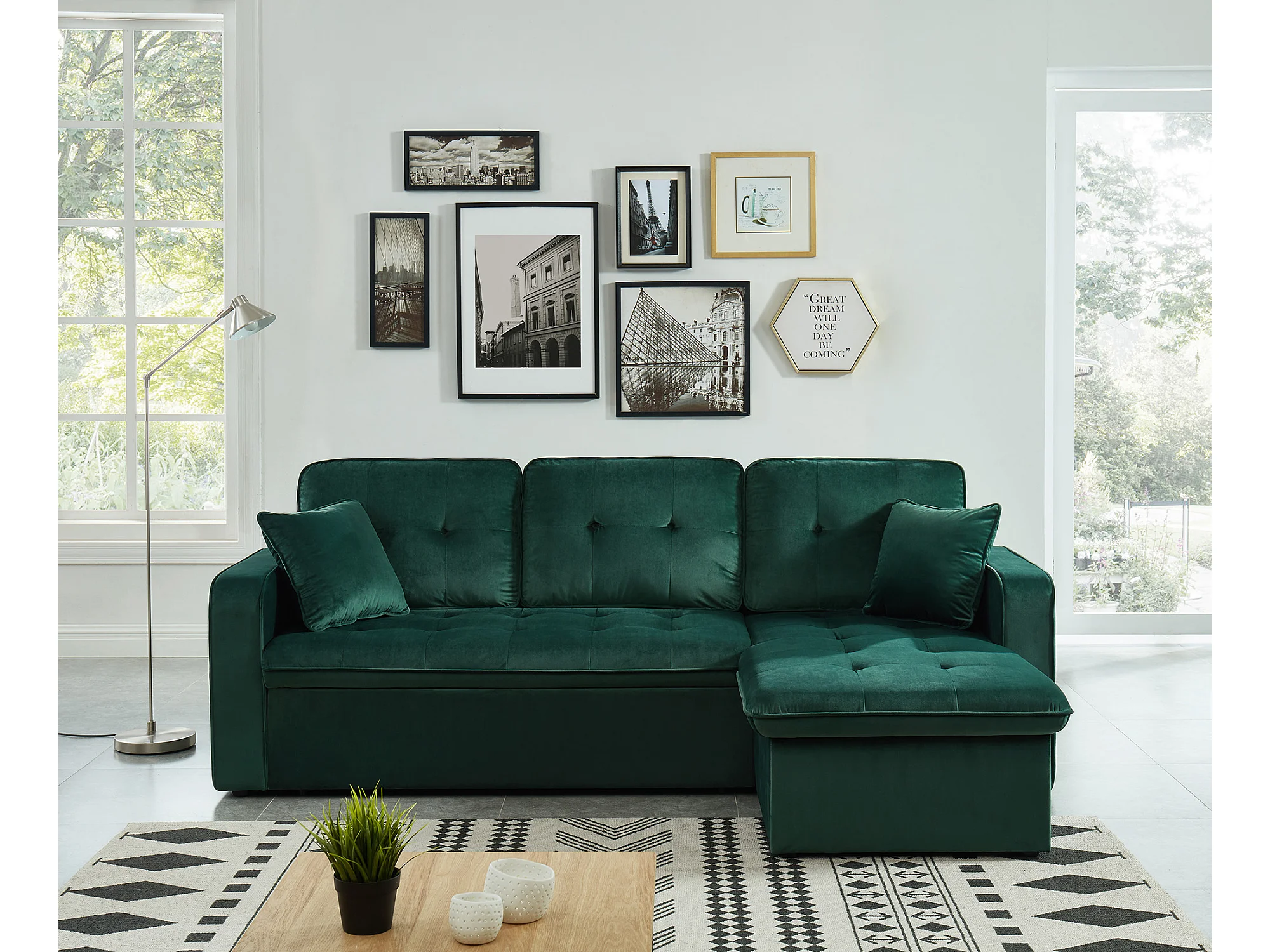 Canapé d'angle CANVAS en velours vert convertible avec coffre de rangement