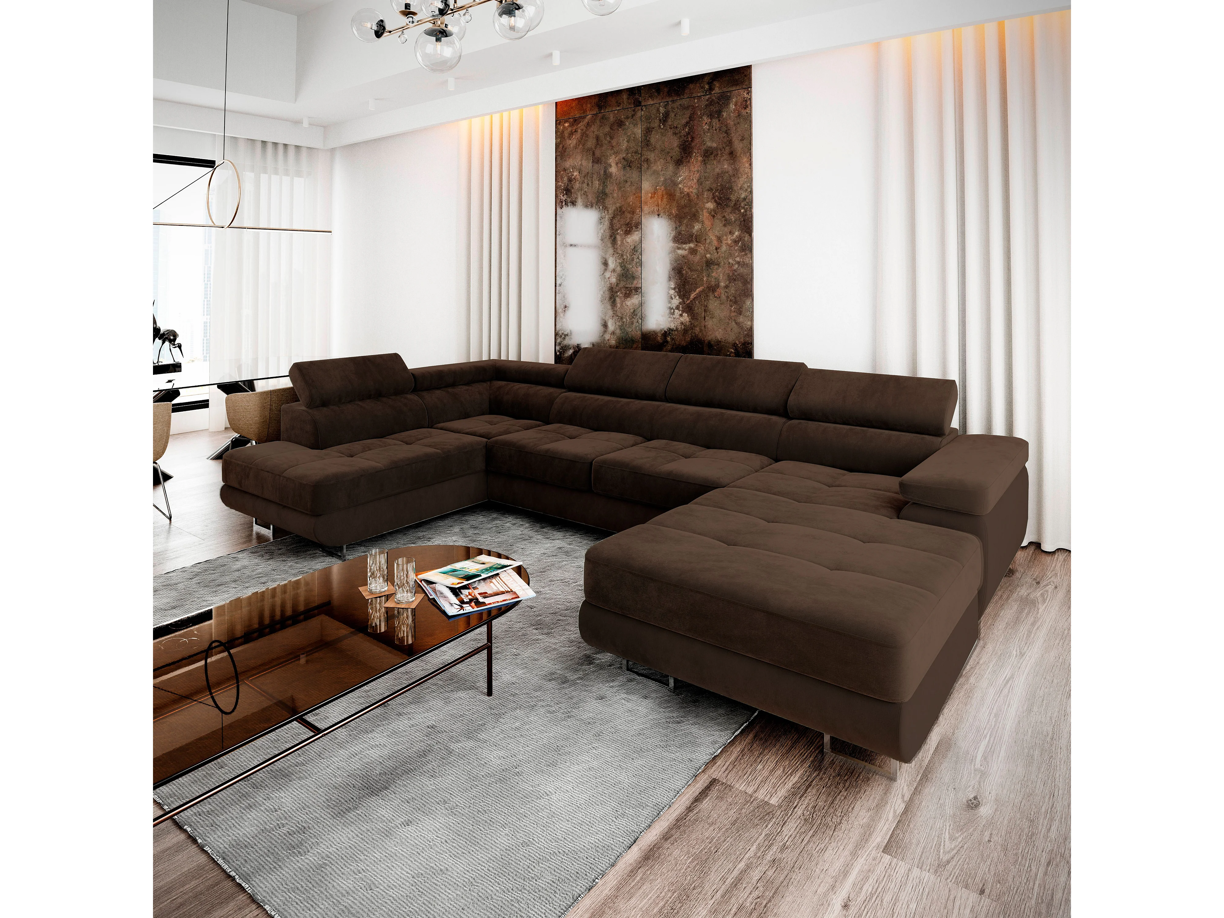 Canapé d'angle CASONE Marron en velours avec fonction de couchage
