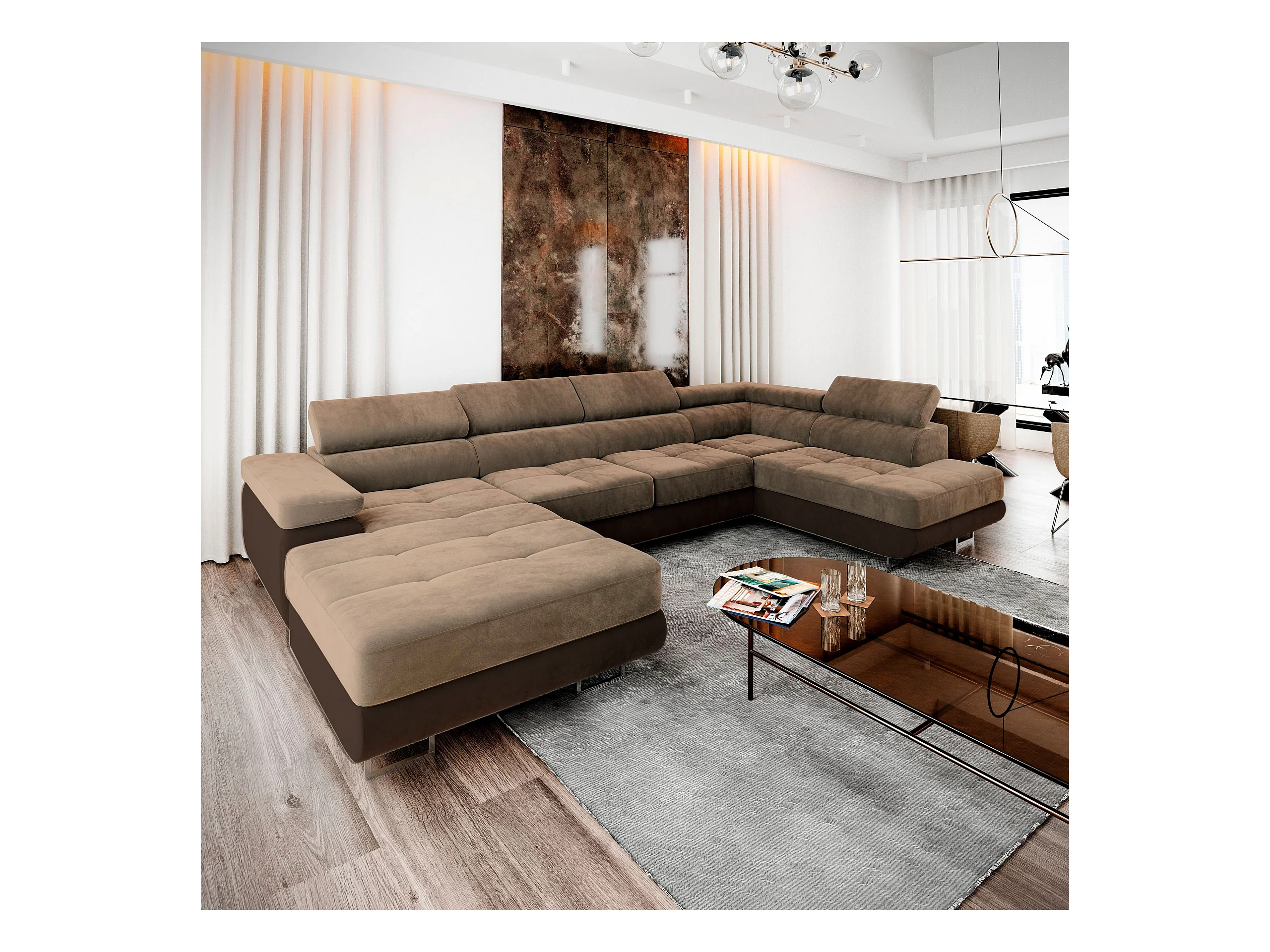 Canapé d'angle CASONE Beige en velours avec fonction de couchage