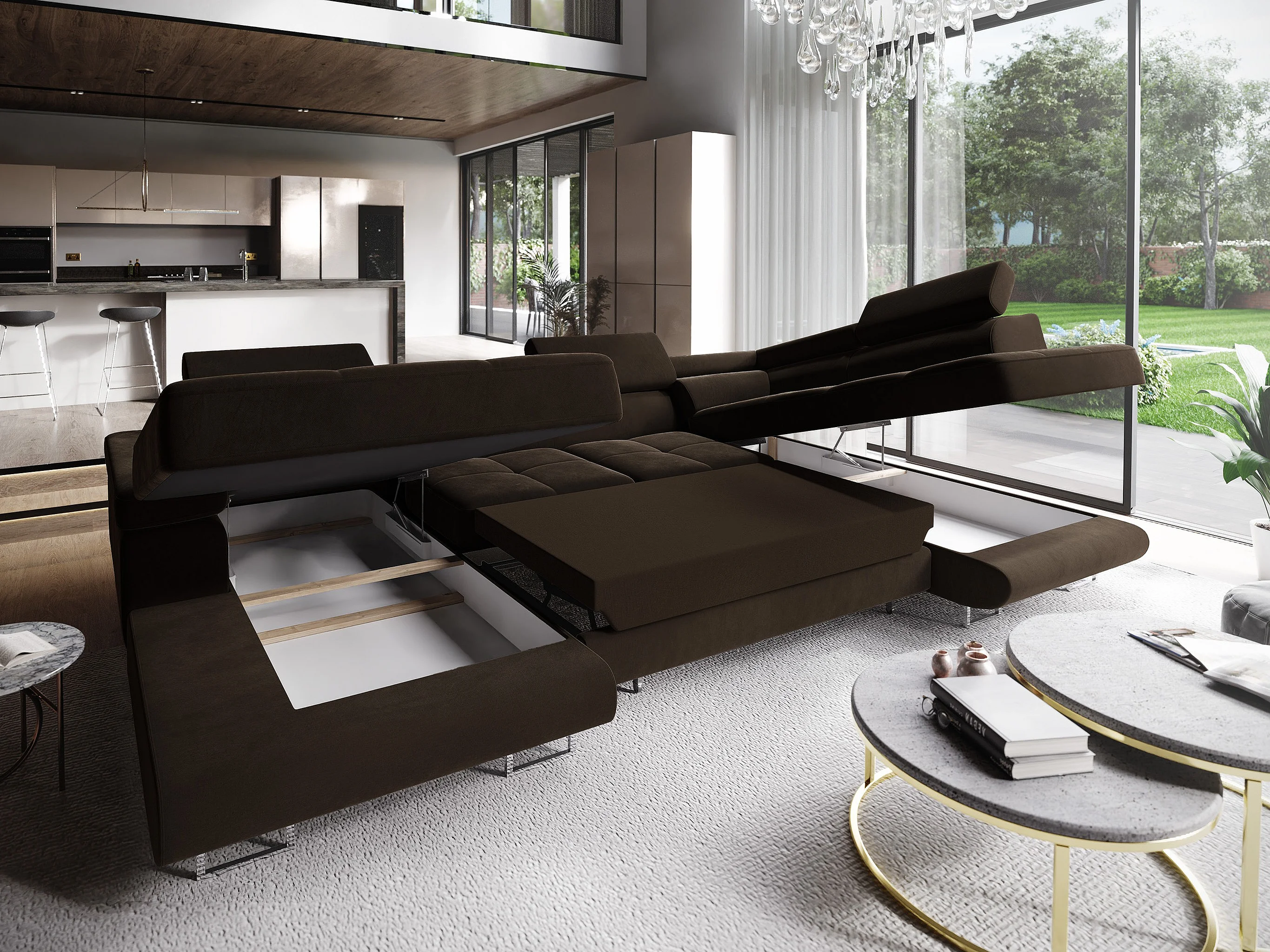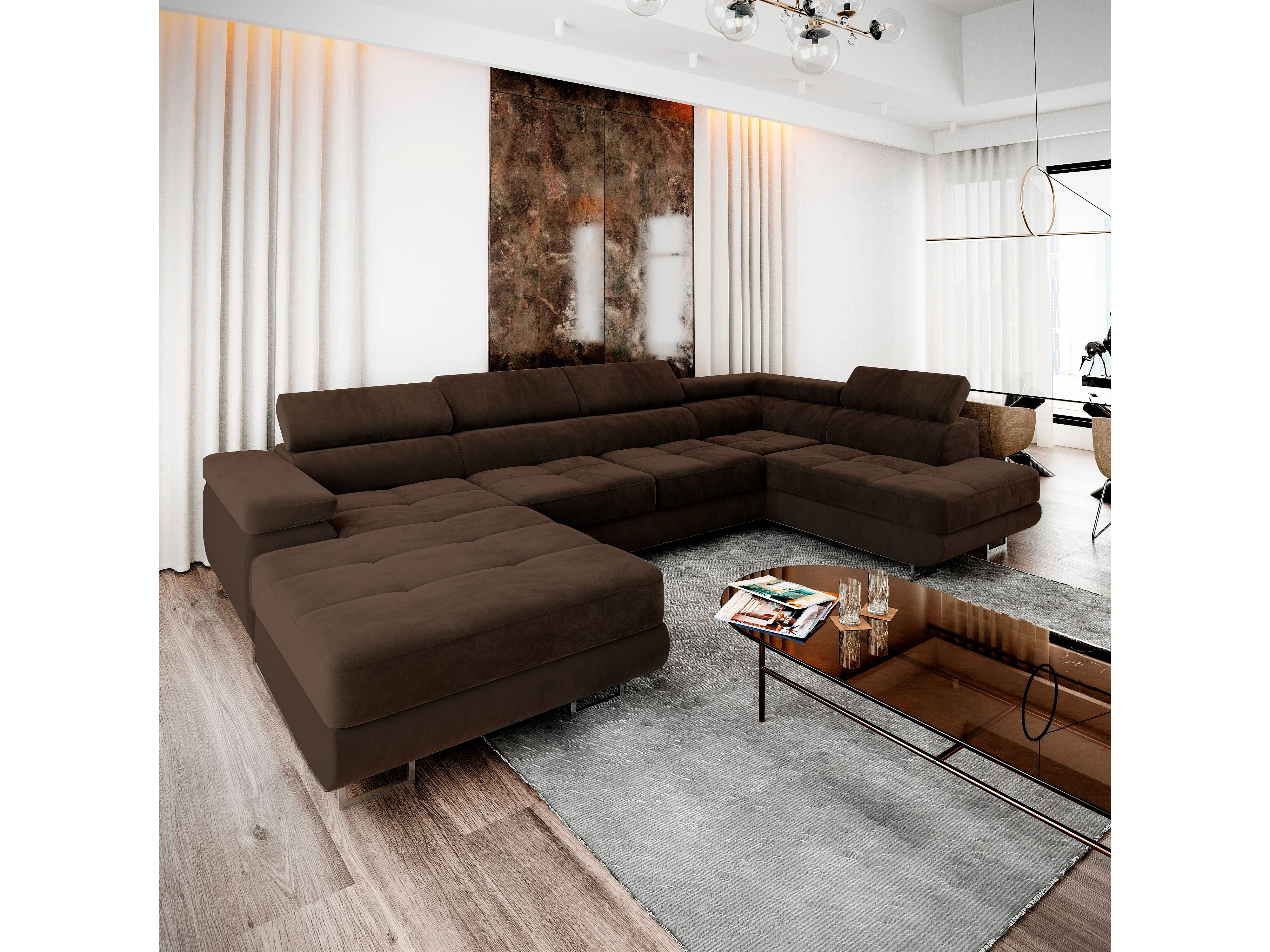 Canapé d'angle CASONE Marron en velours avec fonction de couchage