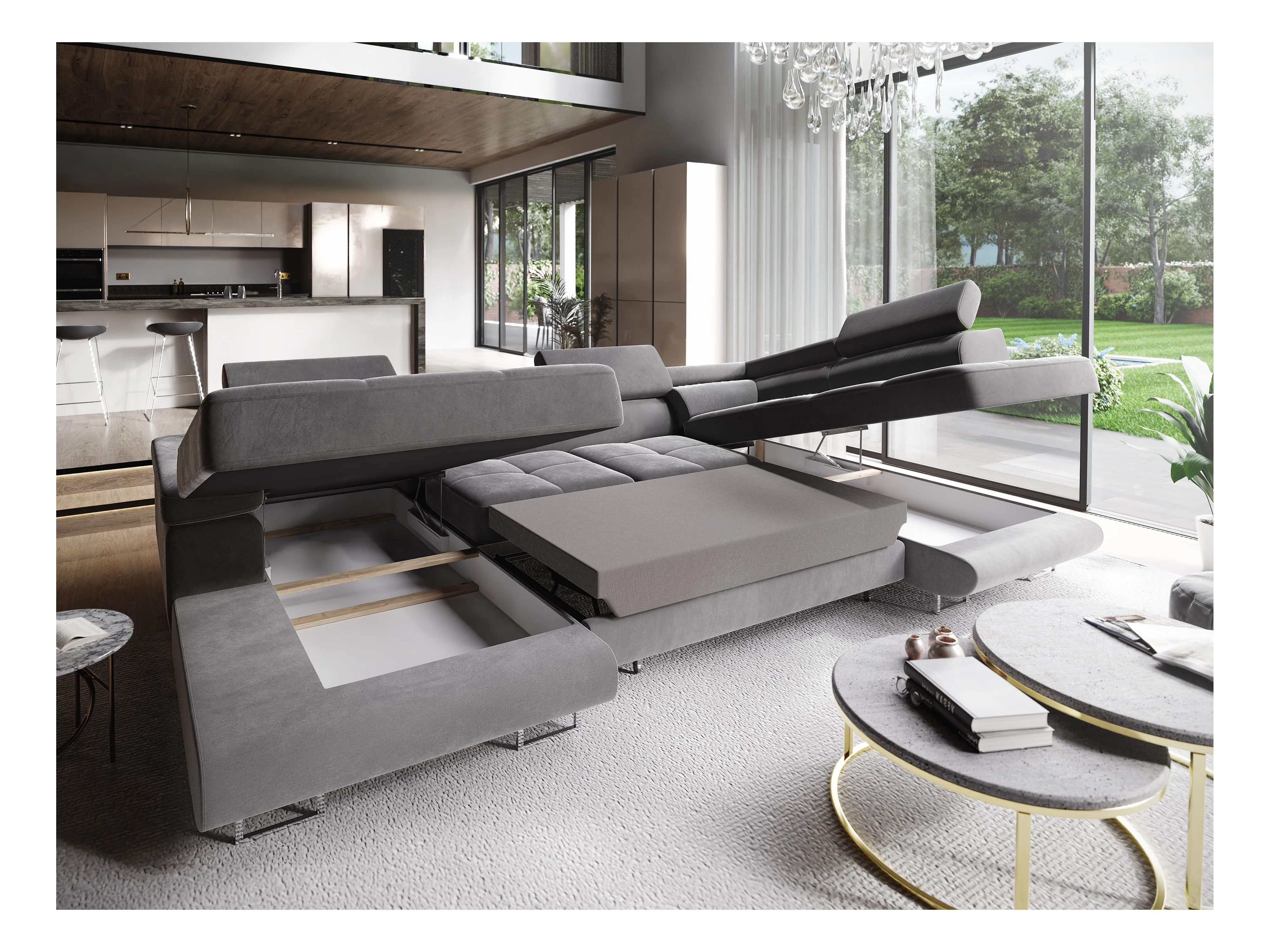 Canapé d'angle CASONE Marron en velours avec fonction de couchage