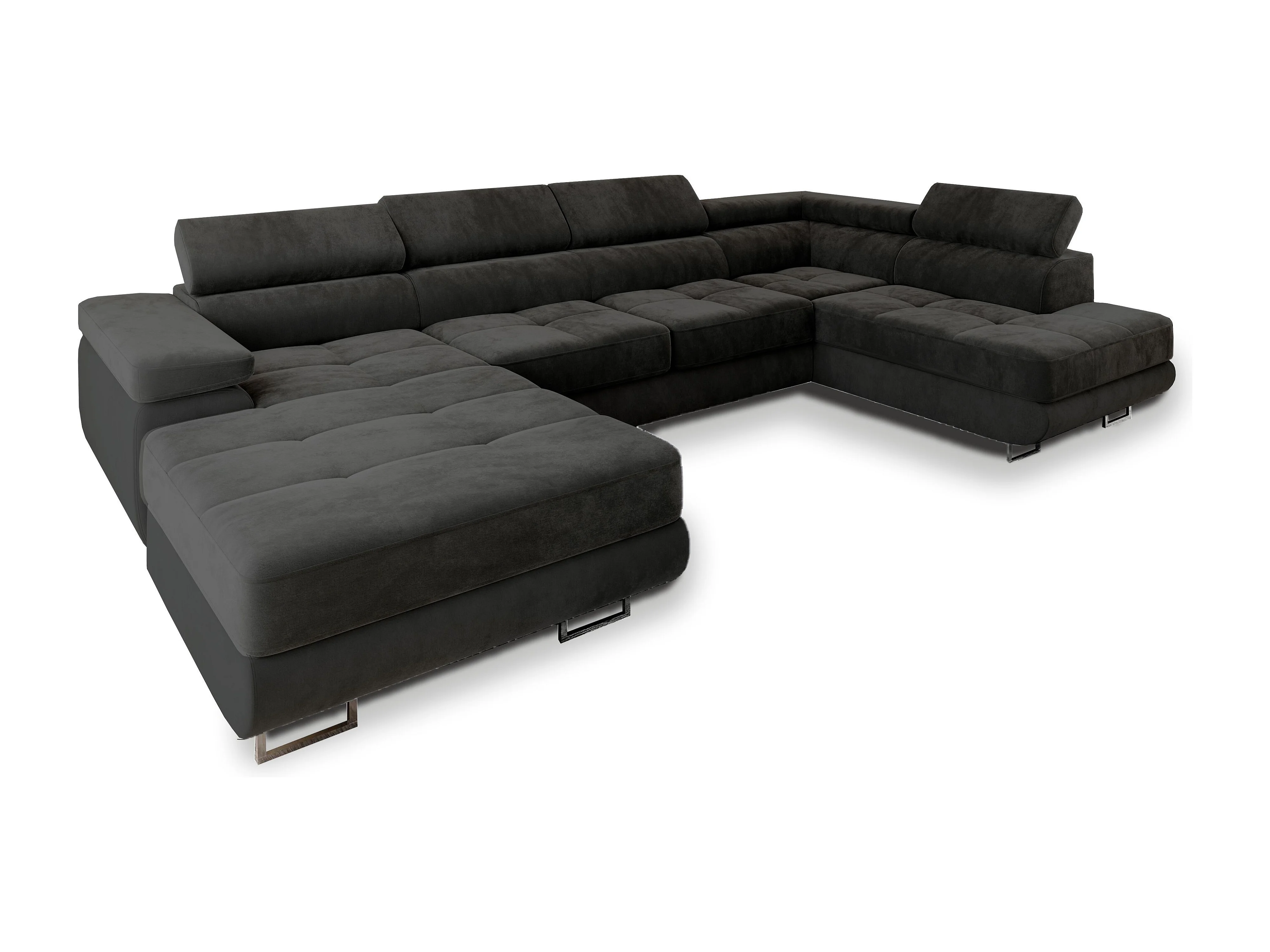 Canapé d'angle CASONE Noir en velours avec fonction de couchage