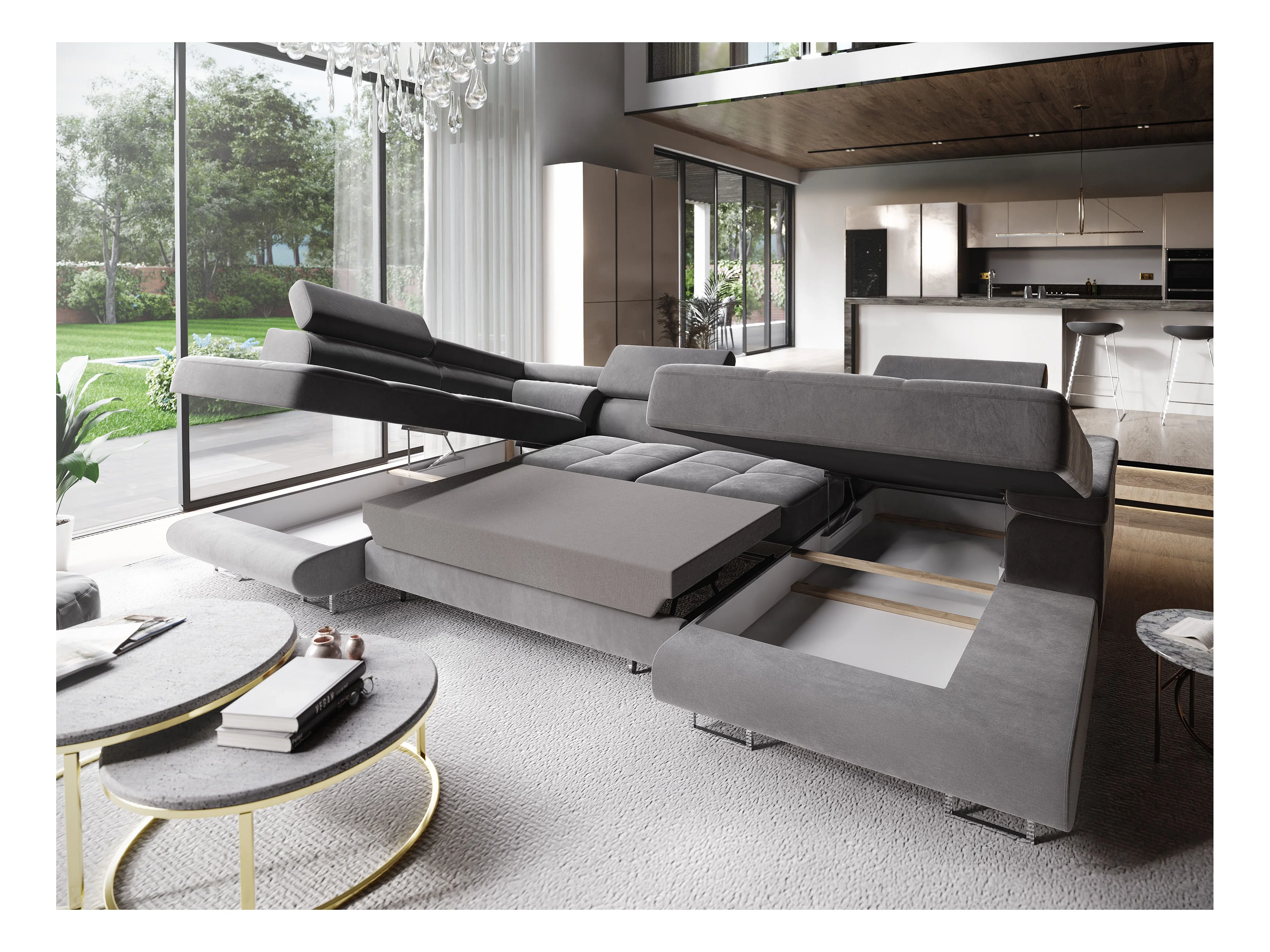 Canapé d'angle CASONE Noir en velours avec fonction de couchage