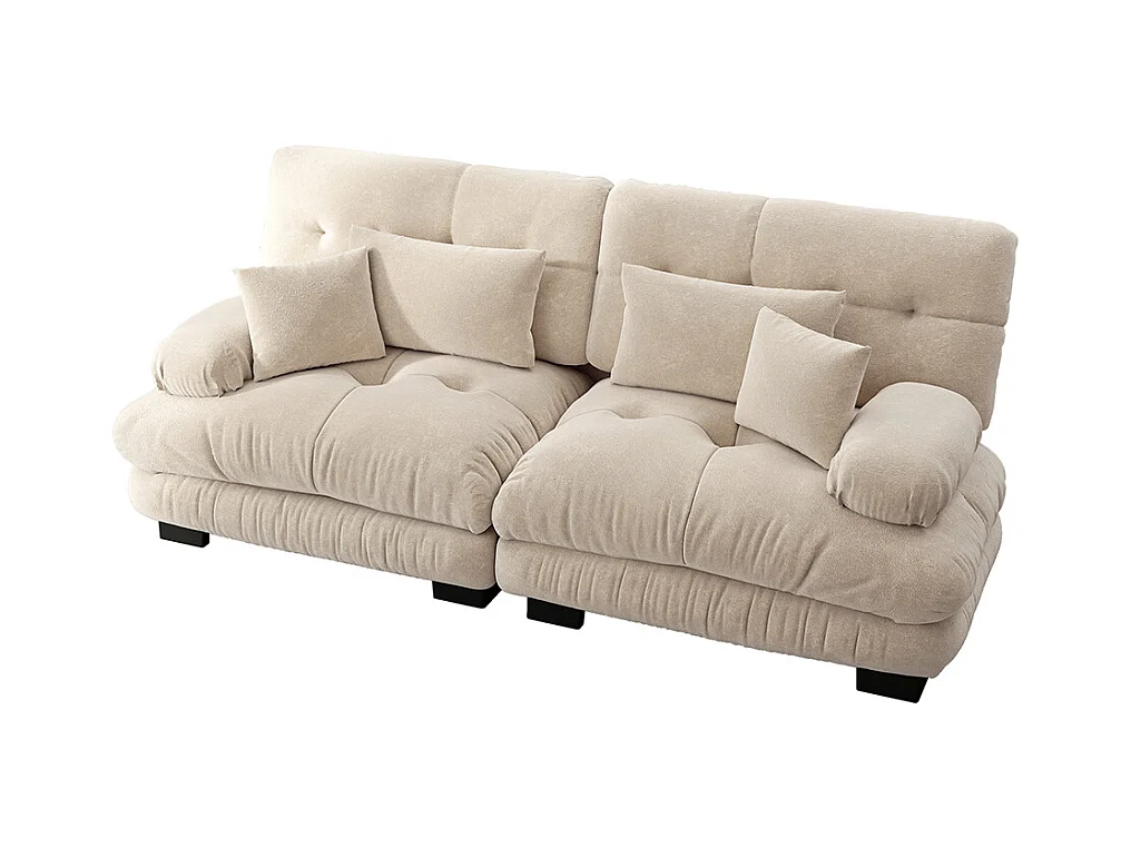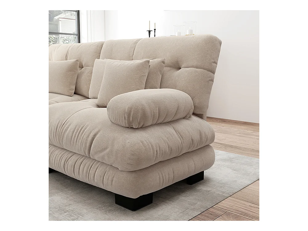 Canapé d'angle Cloud, chenille, avec 2 coussins lombaires et 2 coussins décoratifs, structure en bois massif, beige