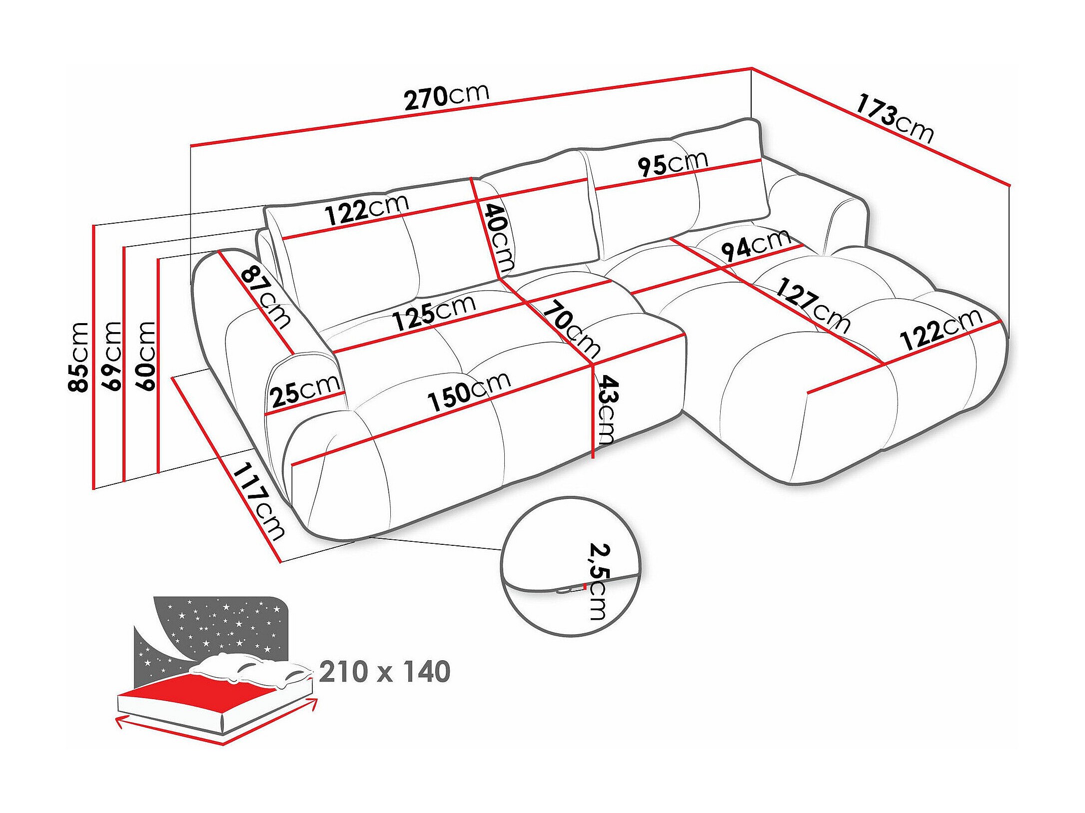 Canapé d'angle TrendyNest 109, Brun clair, Fonction de couchage, Boîte de literie, 270cm