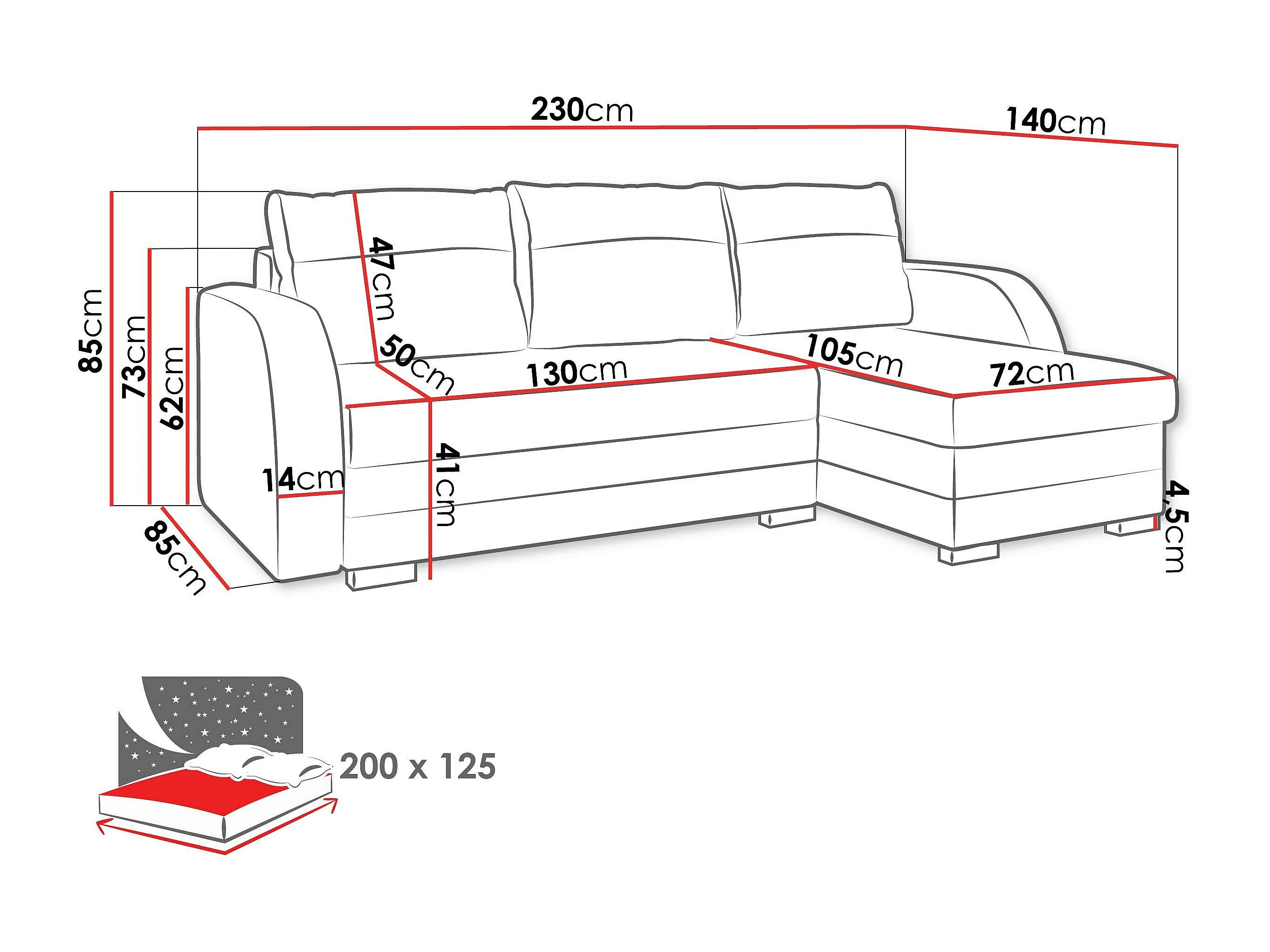 Canapé d'angle Columbus 111, Gris, Disponible, 230x140x85cm