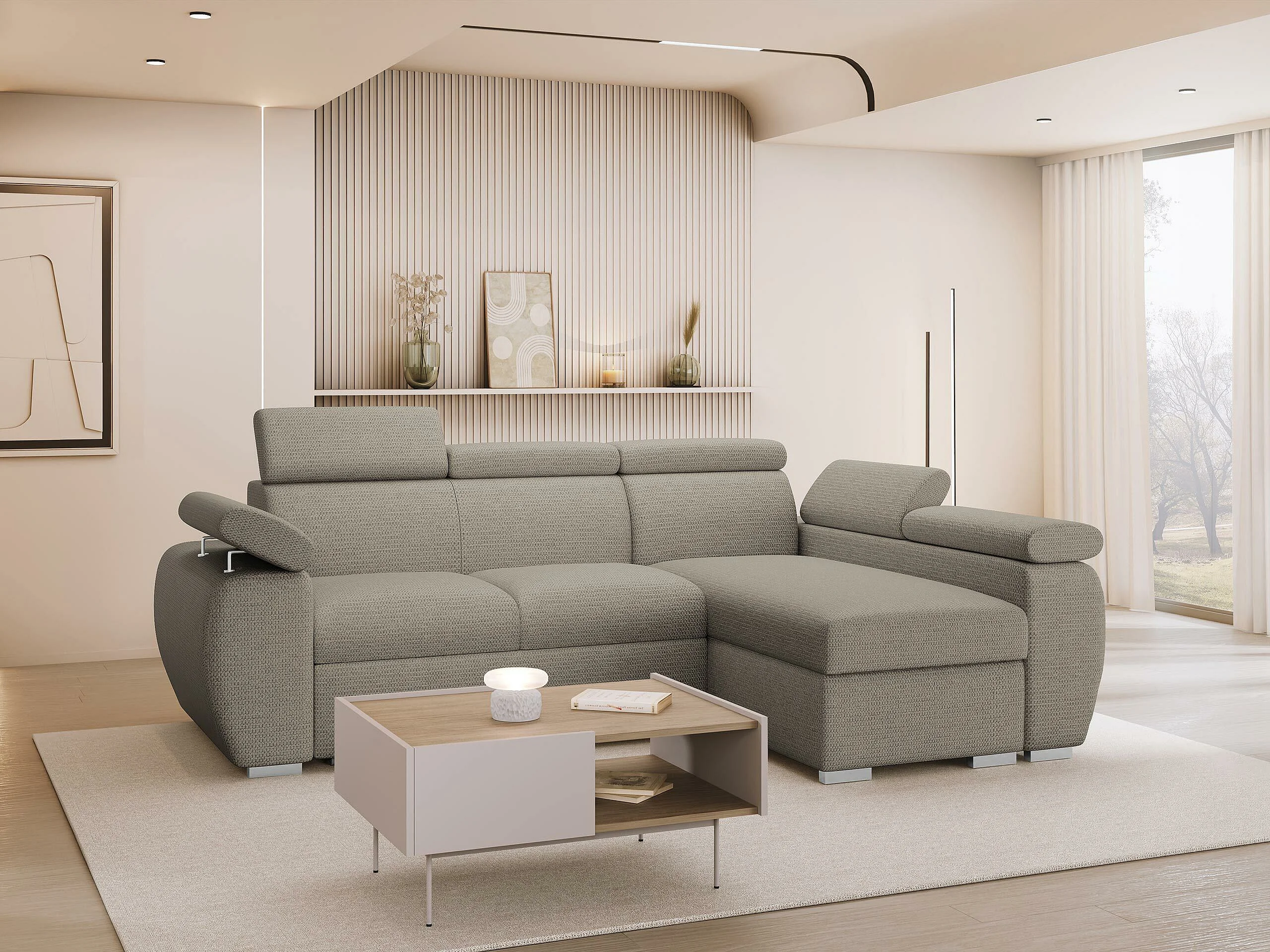 Canapé d'angle Columbus 132, Brun clair, Disponible, 255x170x85cm
