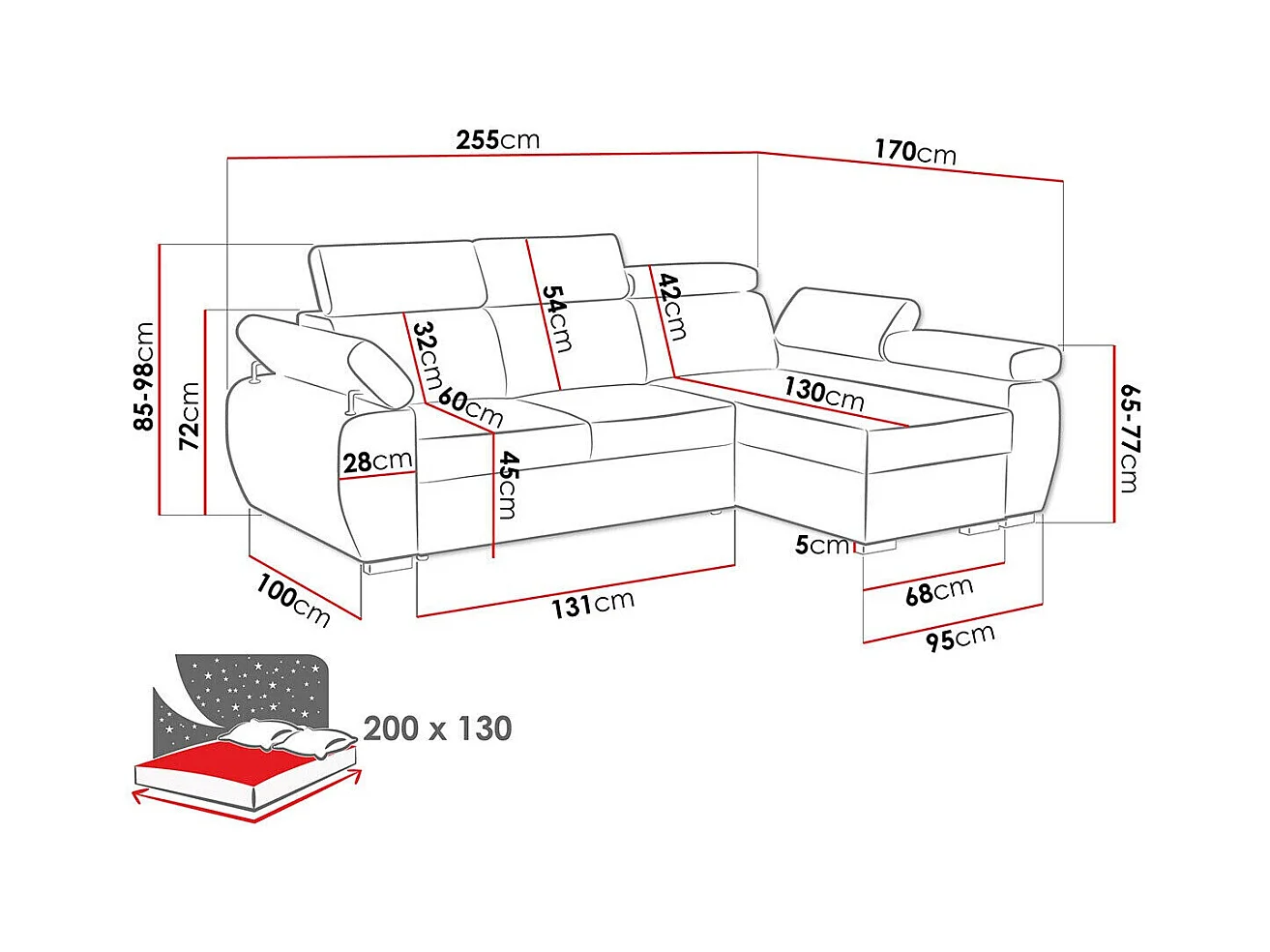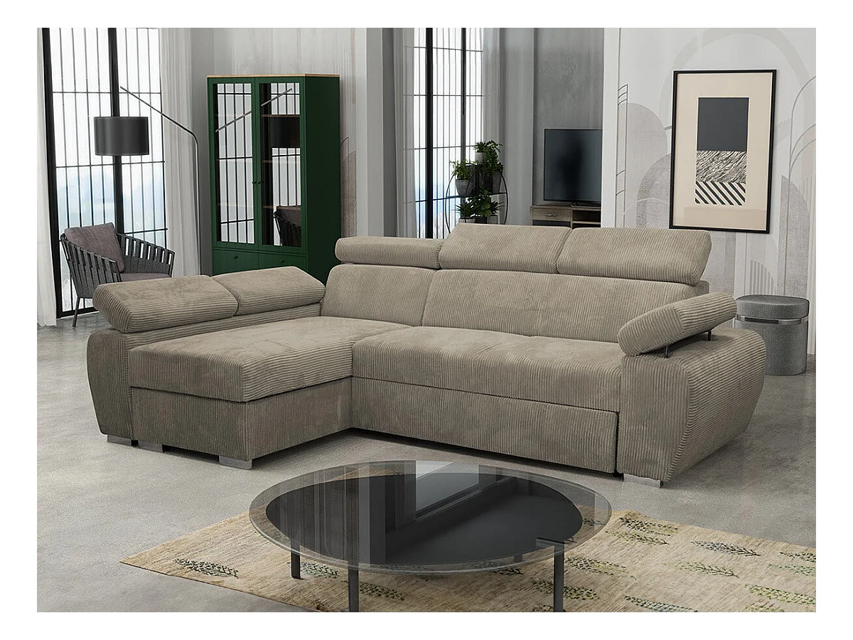 Canapé d'angle Columbus 192, Brun clair, Fonction de couchage, Boîte de literie, 255x85cm