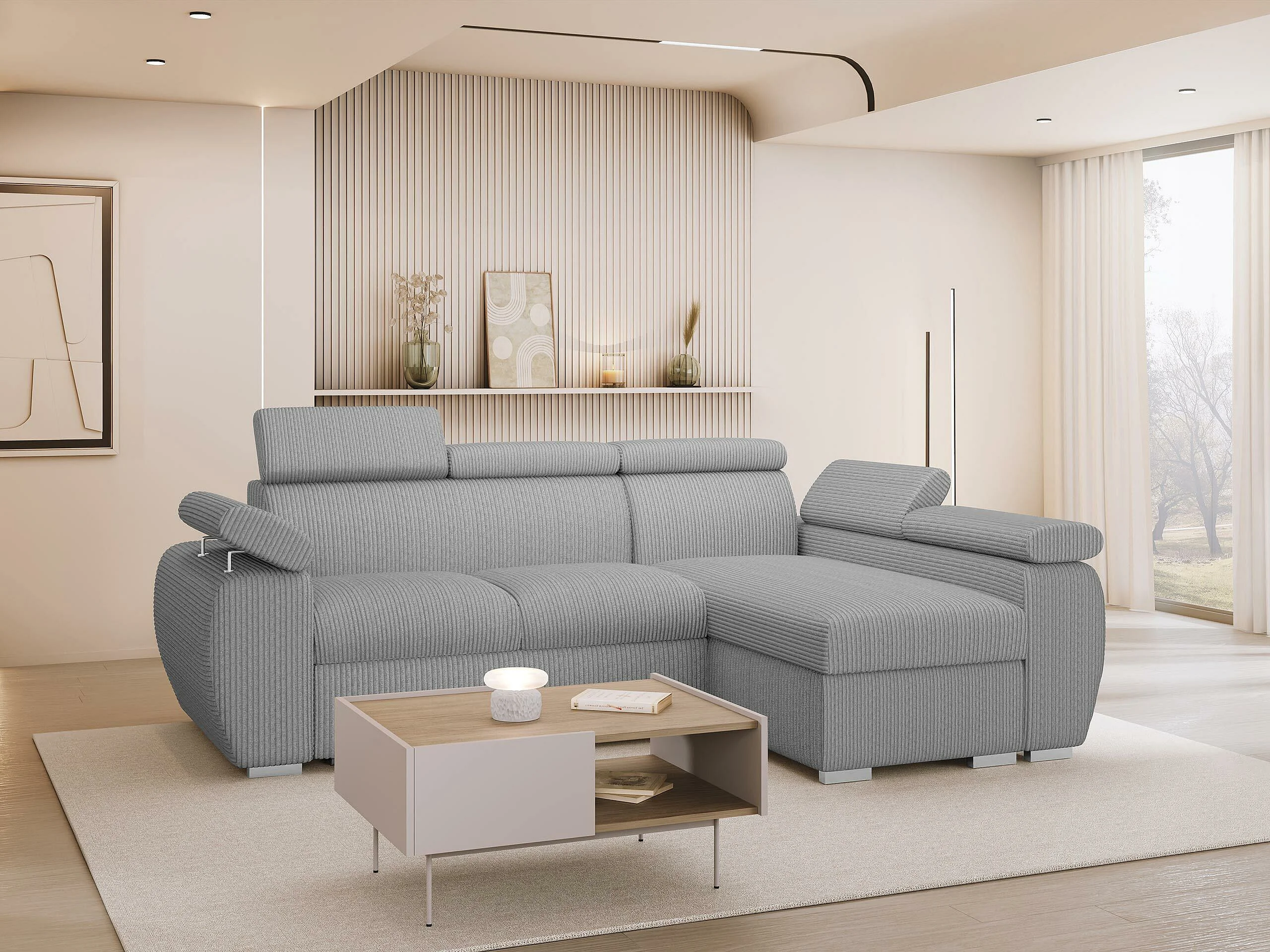 Canapé d'angle Columbus 192, Gris, Disponible, 255x170x85cm