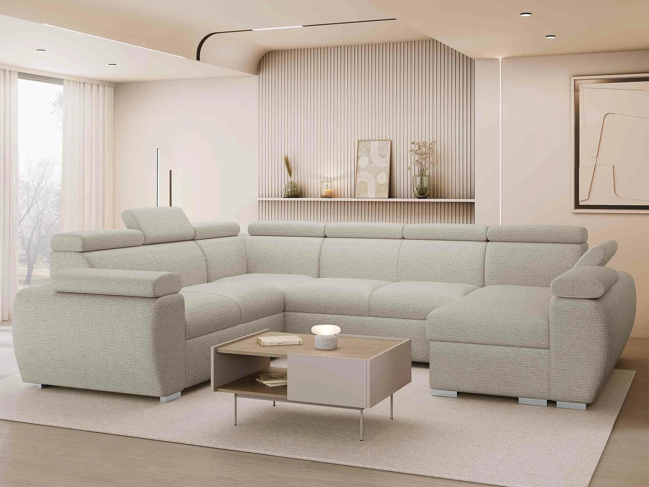 Canapé d'angle Columbus 214, Brun clair, Disponible, 325x260x85cm