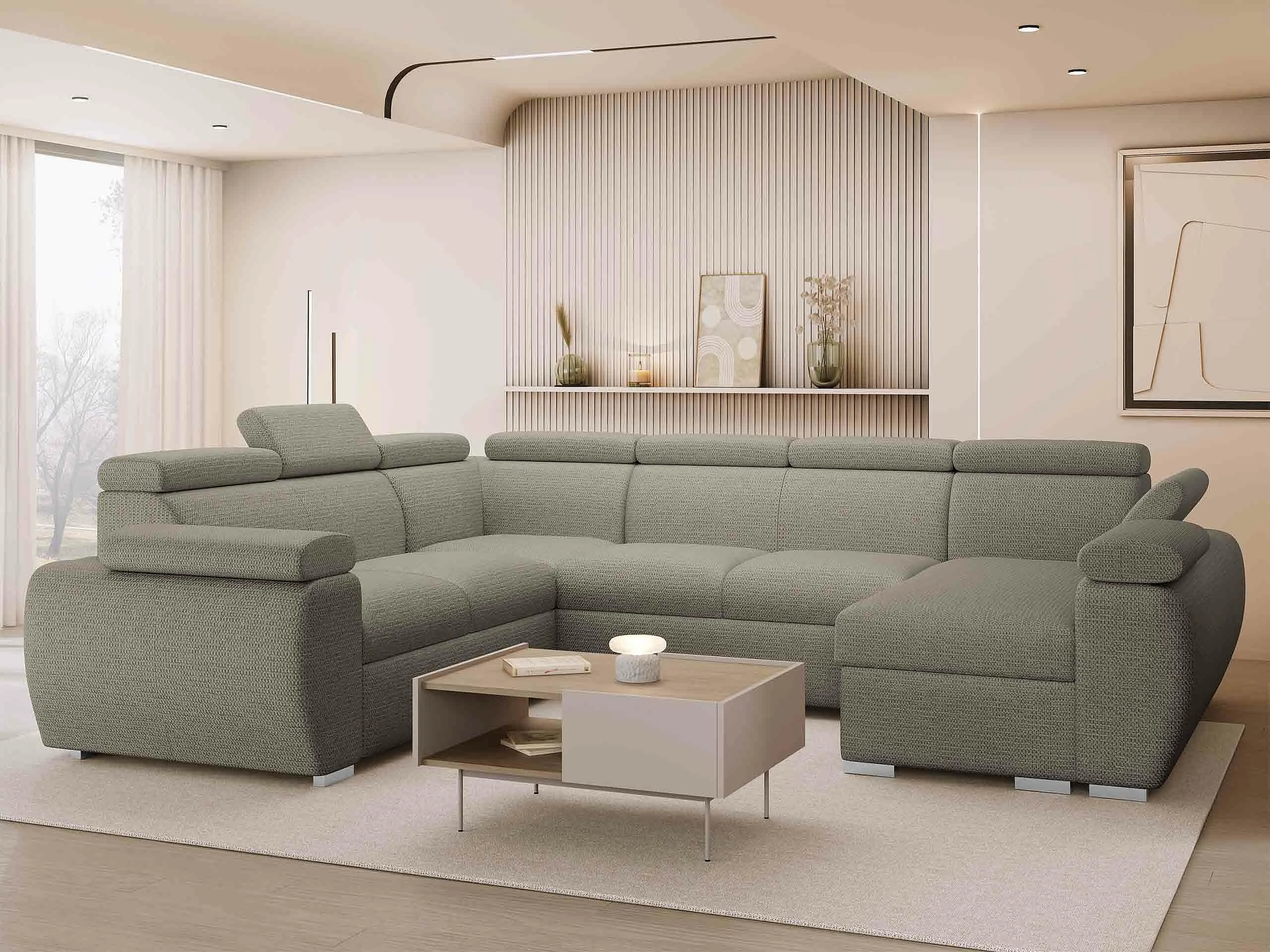 Canapé d'angle Columbus 214, Gris clair, Disponible, 325x260x85cm