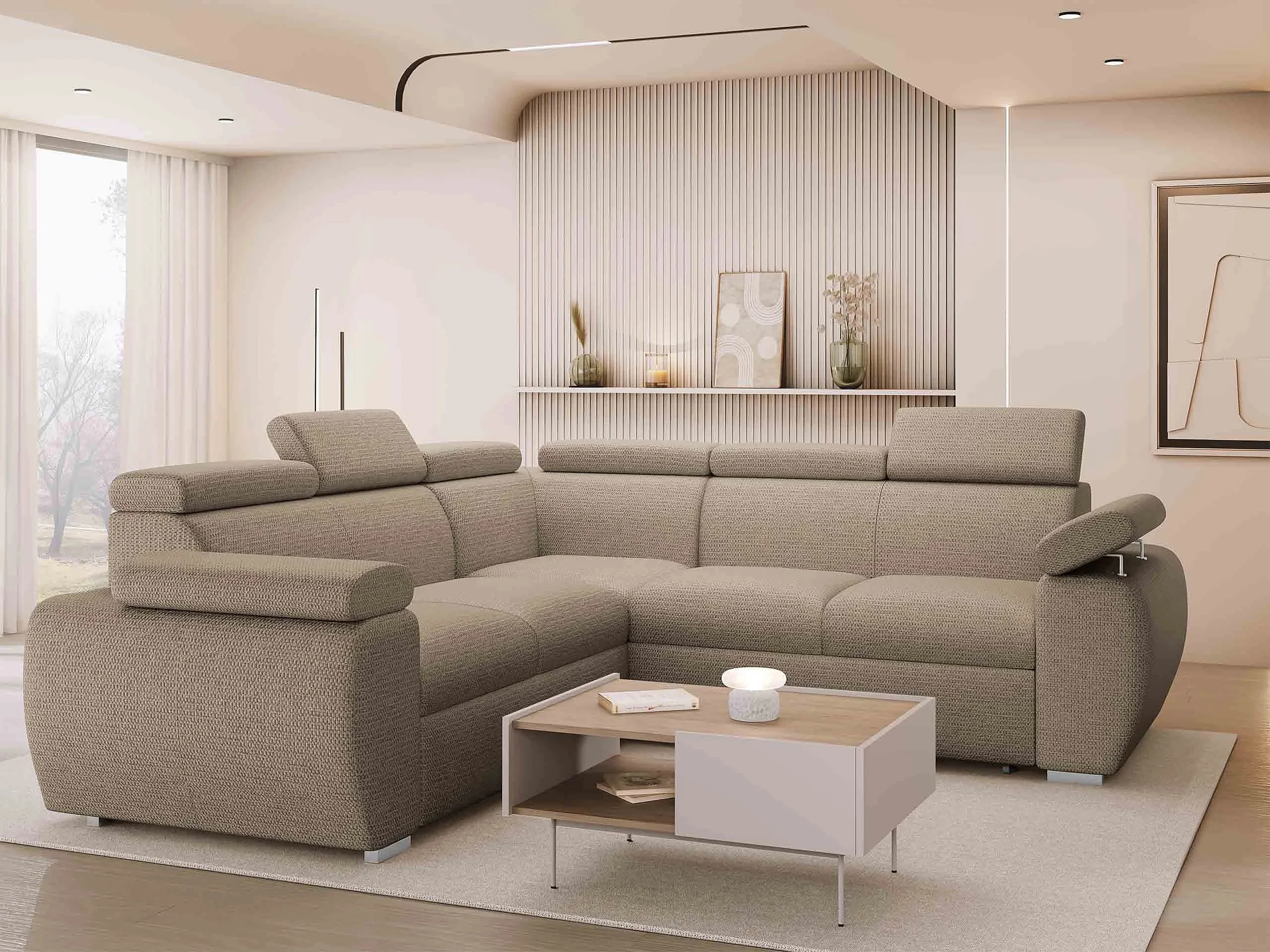 Canapé d'angle Columbus 215, Brun clair, Disponible, 260x260x85cm