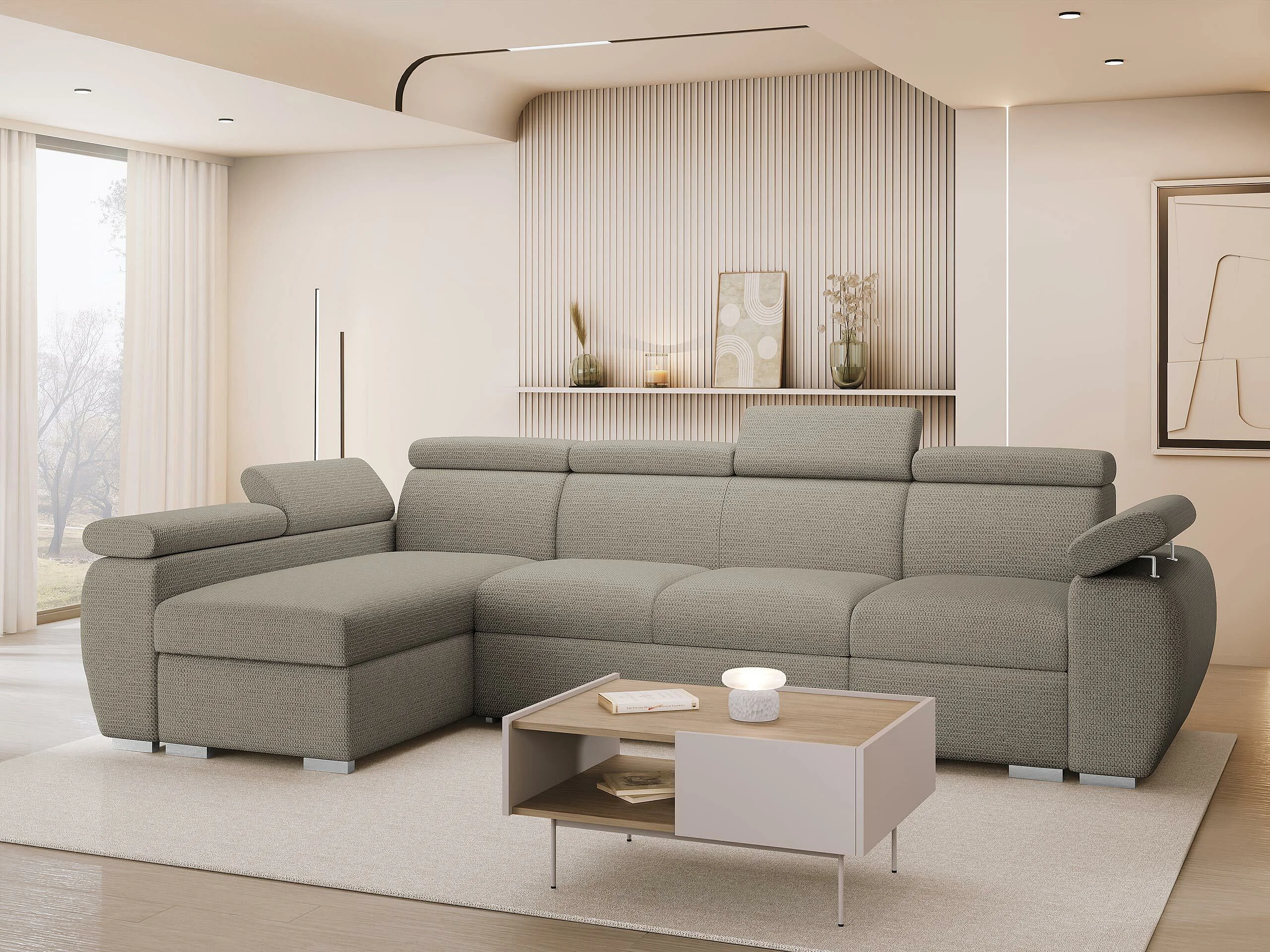 Canapé d'angle Columbus 227, Brun clair, Disponible, 320x170x85cm