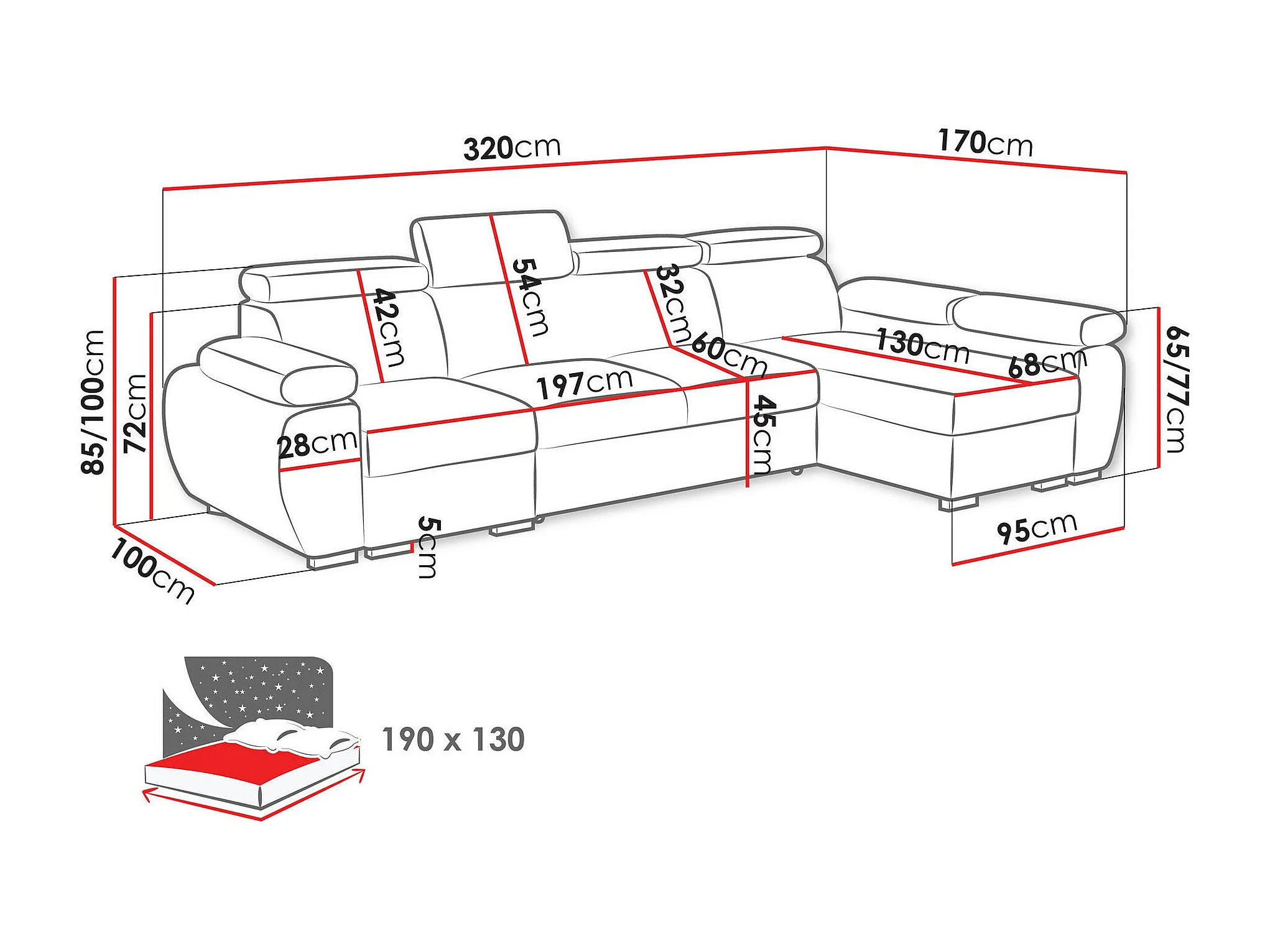 Canapé d'angle Columbus 227, Gris, Disponible, 320x170x85cm