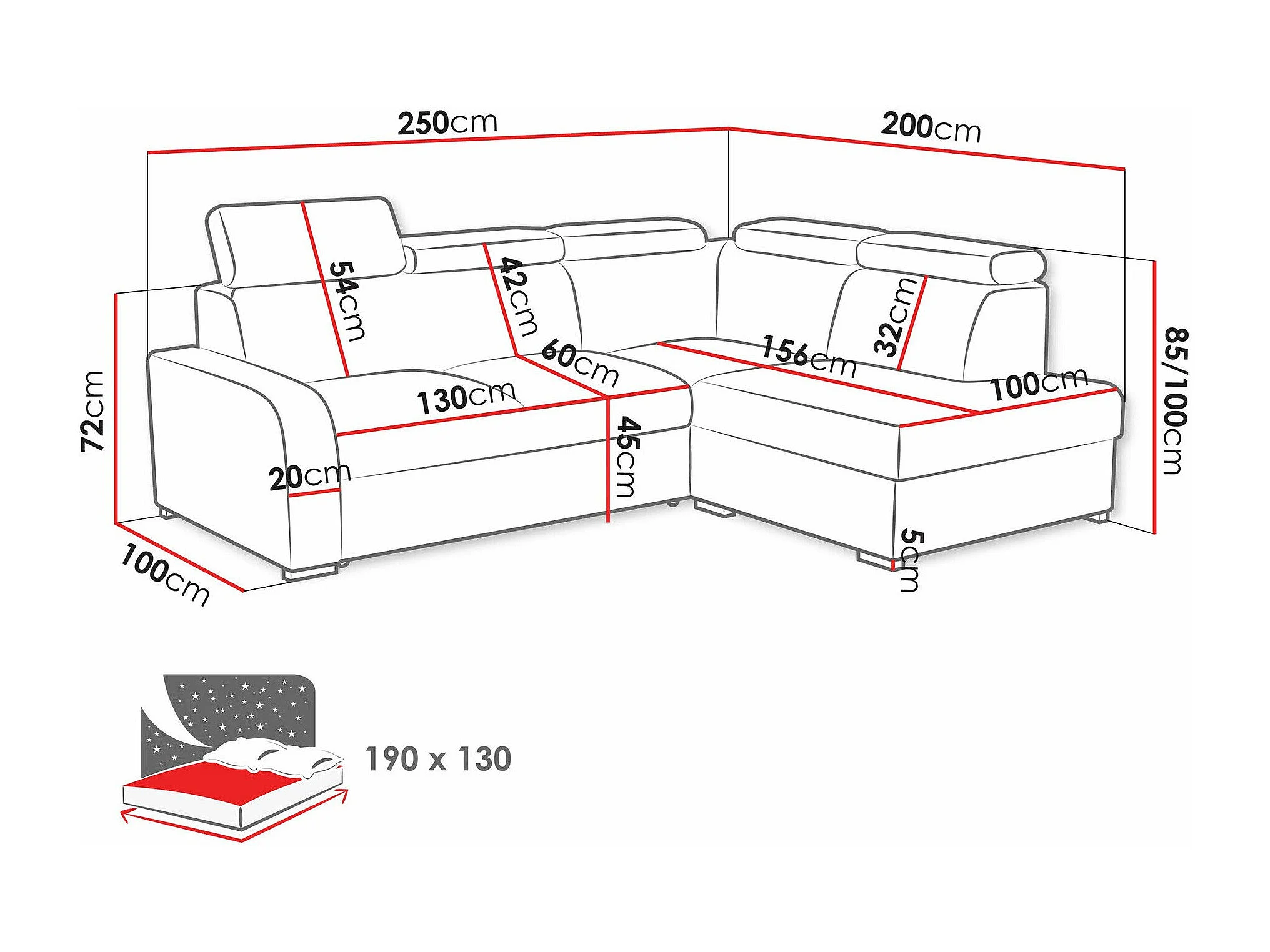 Canapé d'angle Ovos II, Bleu, Disponible, 250x200x85cm