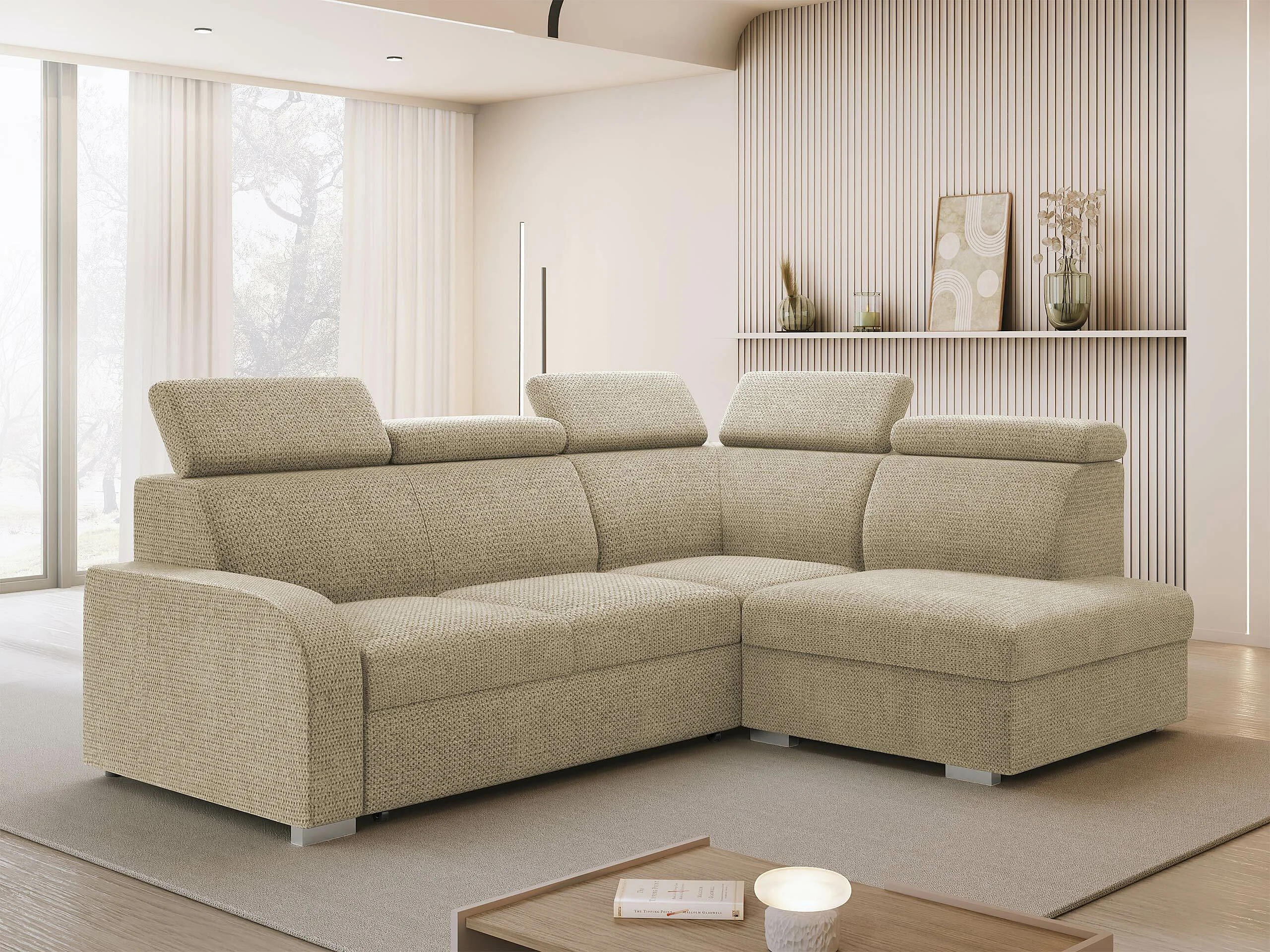 Canapé d'angle Etrcala 108, Brun clair, Disponible, 250x200x85cm
