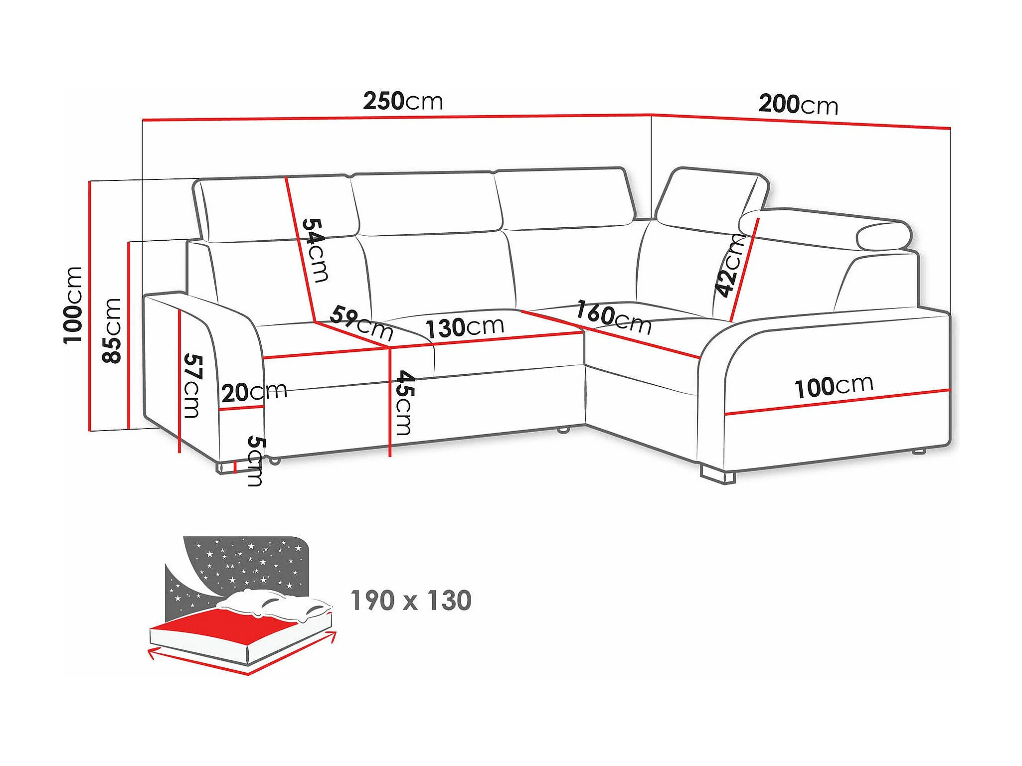 Canapé d'angle Ovos III, Marron, Disponible, 250x200x100cm