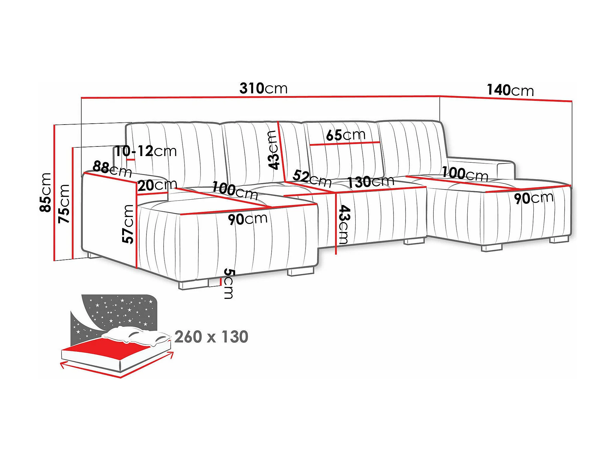 Canapé d'angle Columbus 232, Gris, Disponible, 310x140x85cm