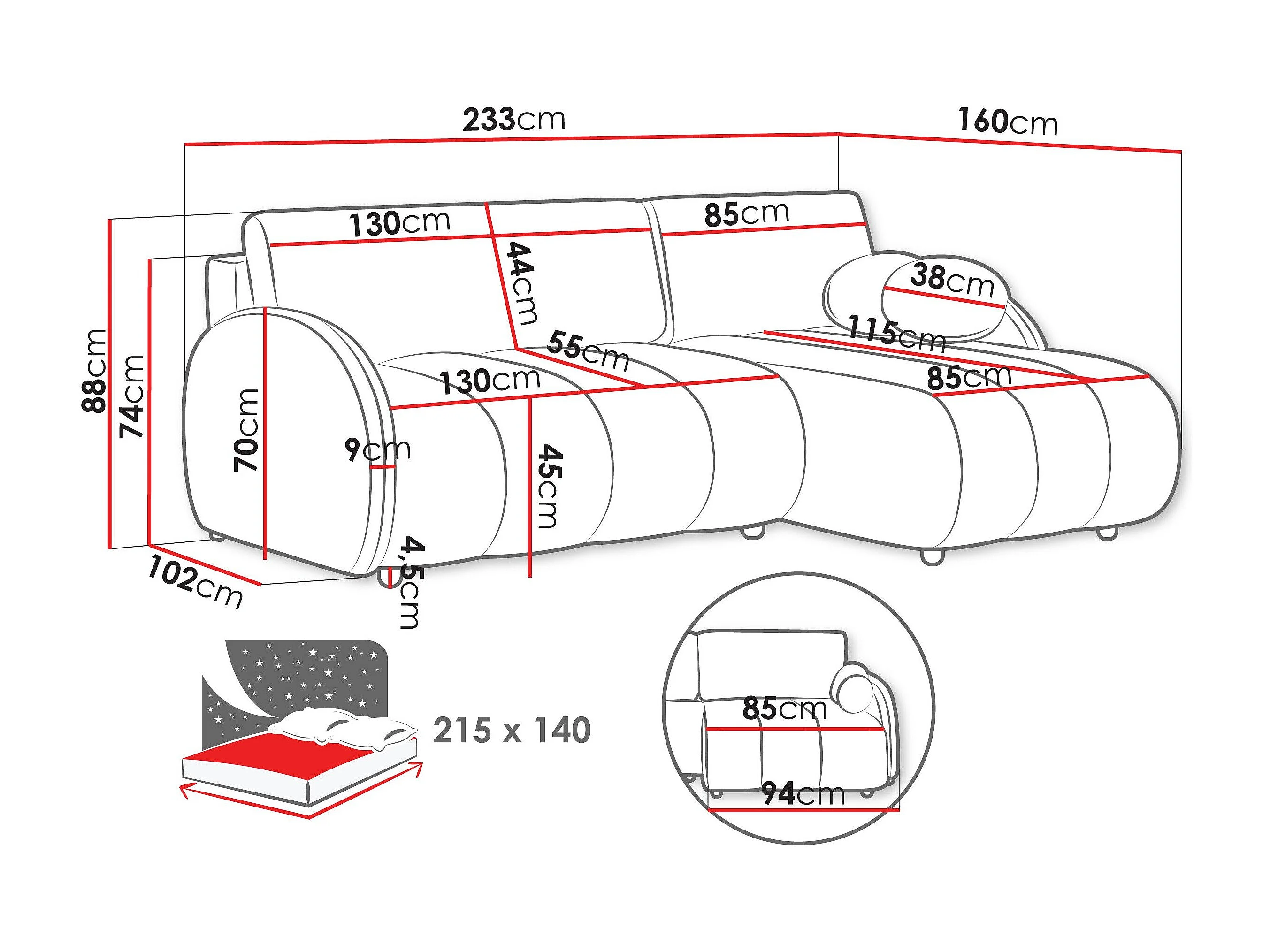 Canapé d'angle Columbus 247, Gris, Disponible, 233x160x88cm
