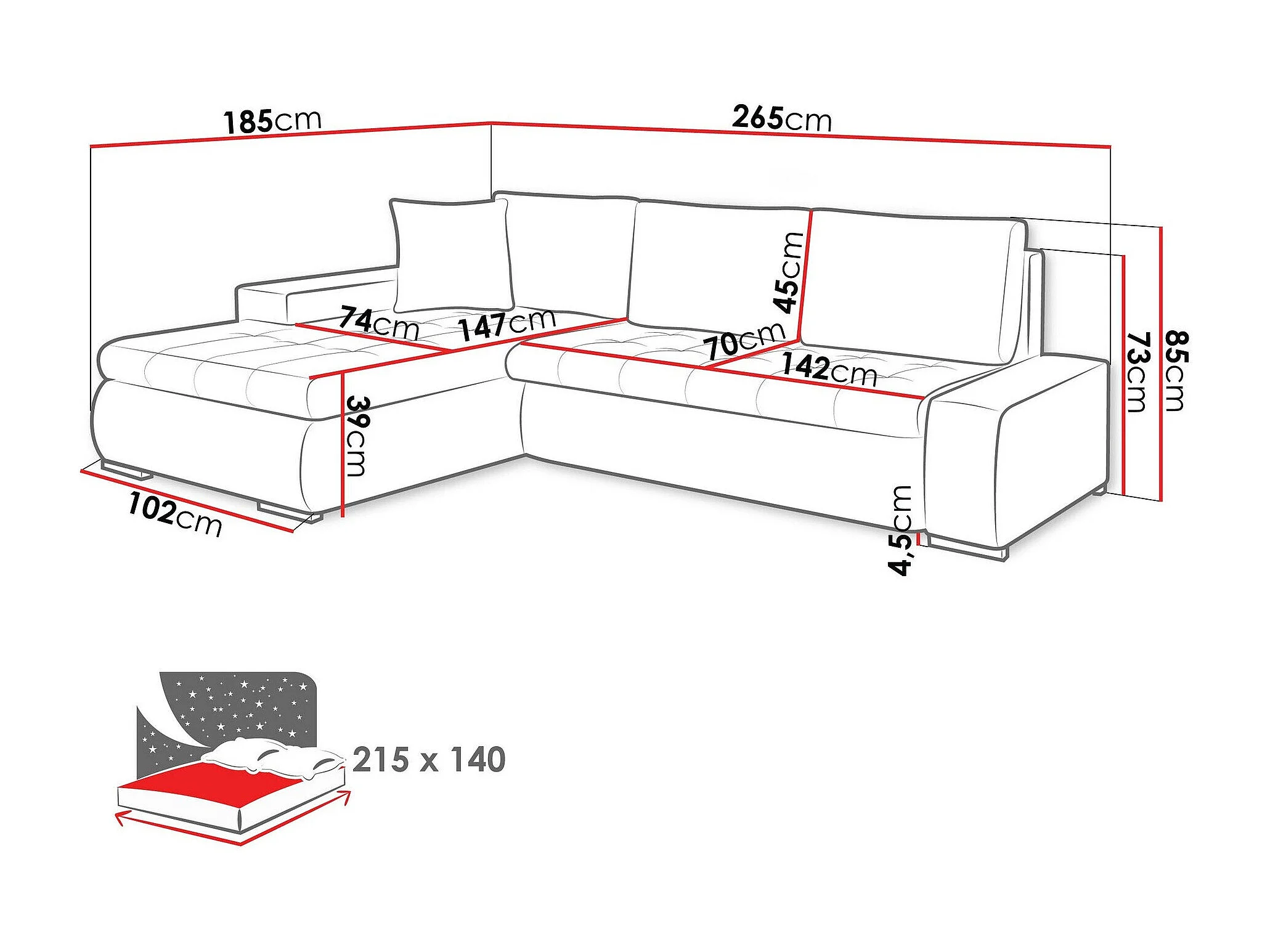 Canapé d'angle Comfivo Nitor, Gris, Disponible, 265x185x85cm