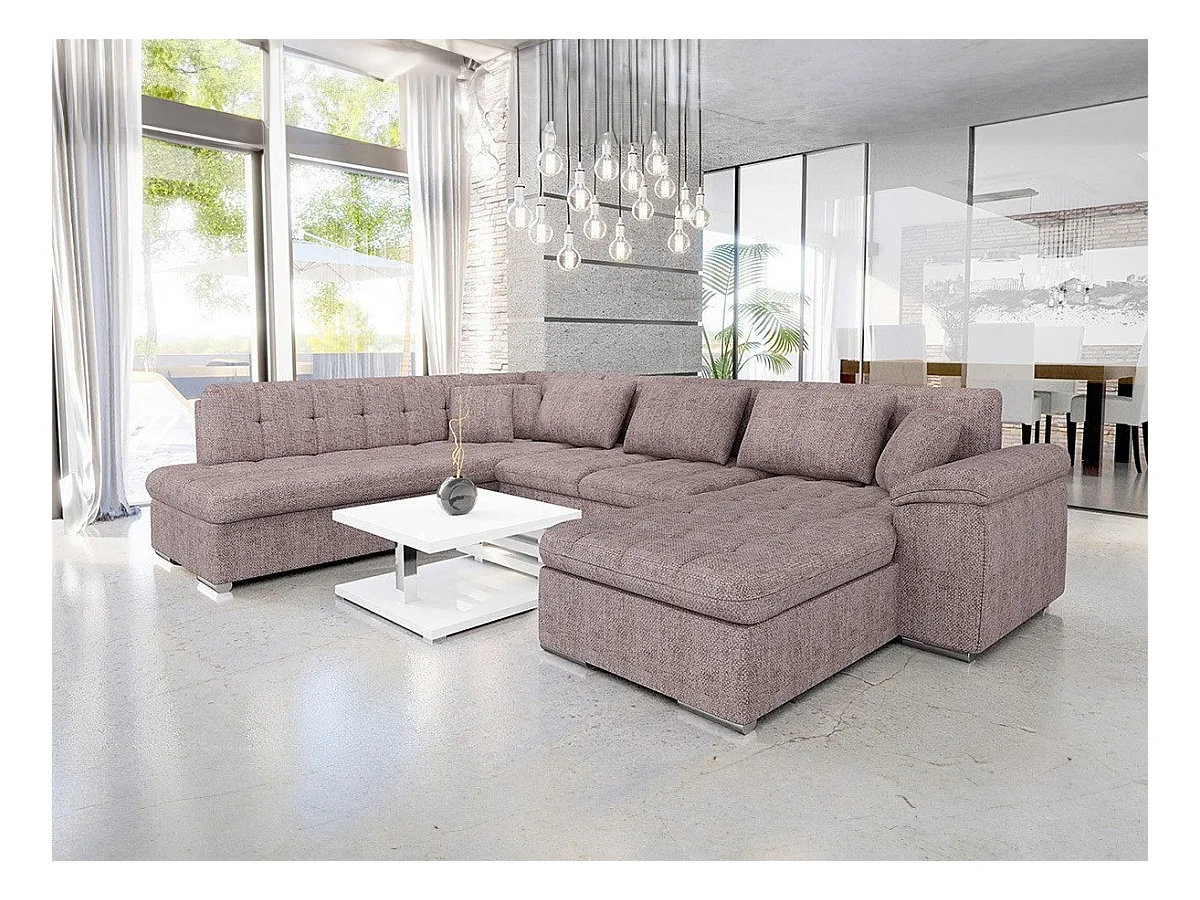 Canapé d'angle Comfivo 114, Brun clair, Fonction de couchage, Boîte de literie, 348x205cm