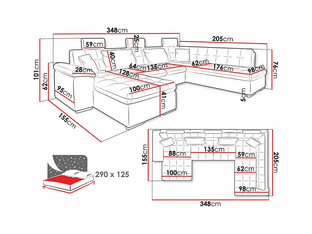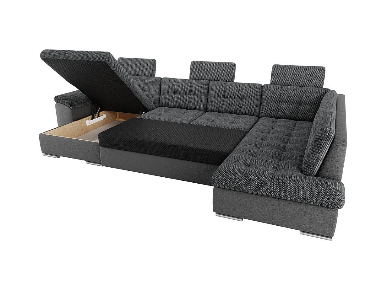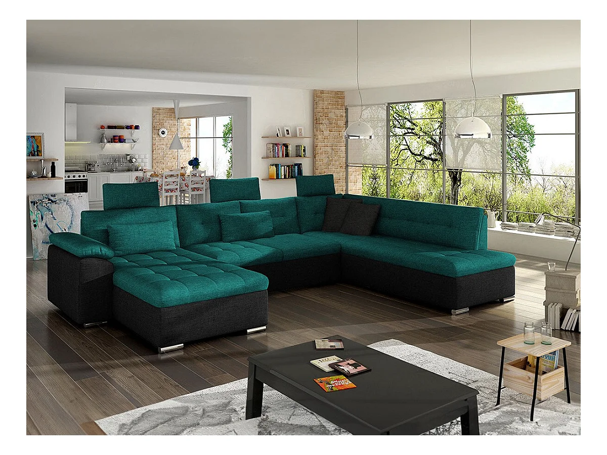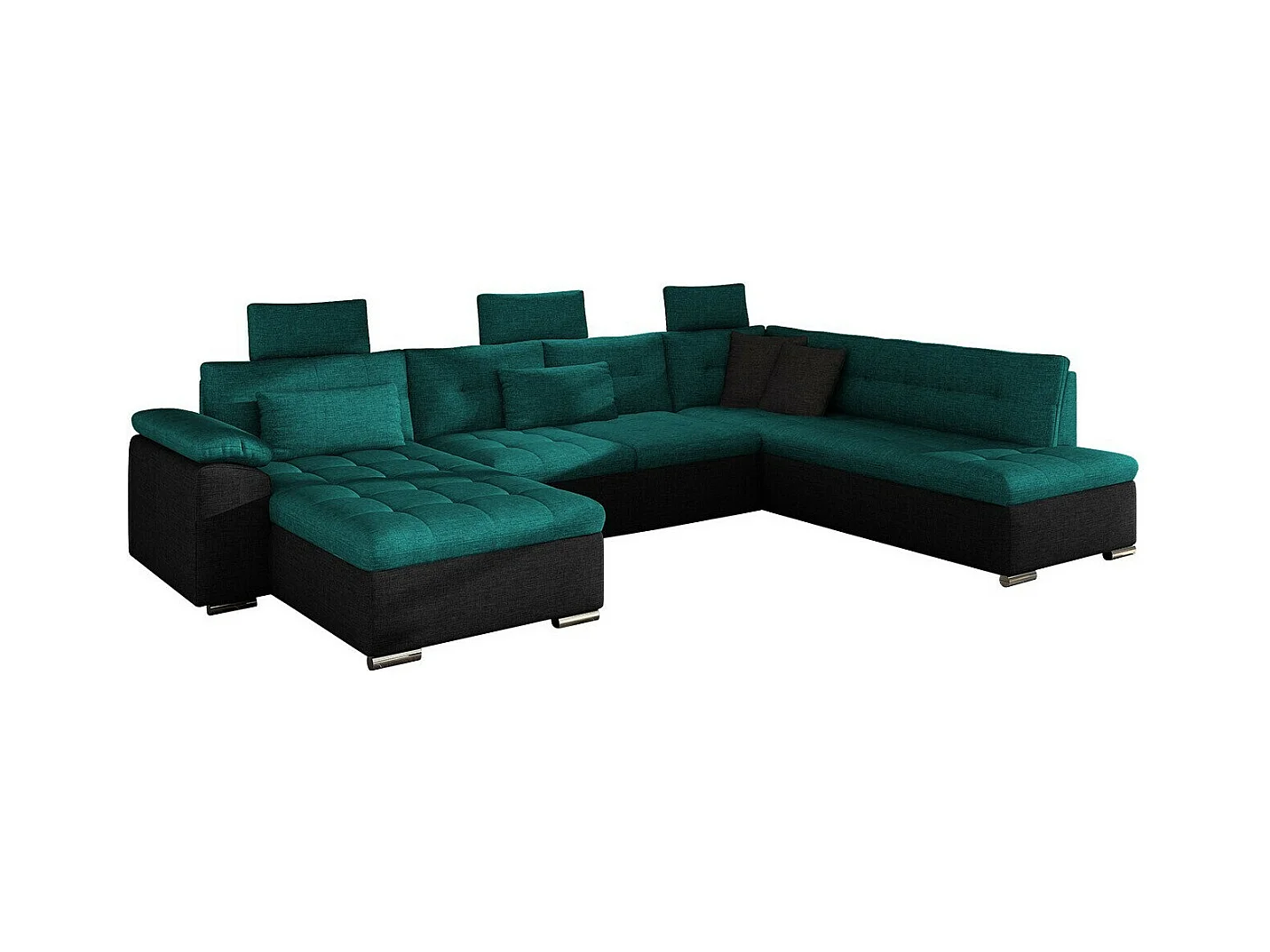 Canapé d'angle Comfivo 127, Vert, Fonction de couchage, Boîte de literie, 350x205x101cm