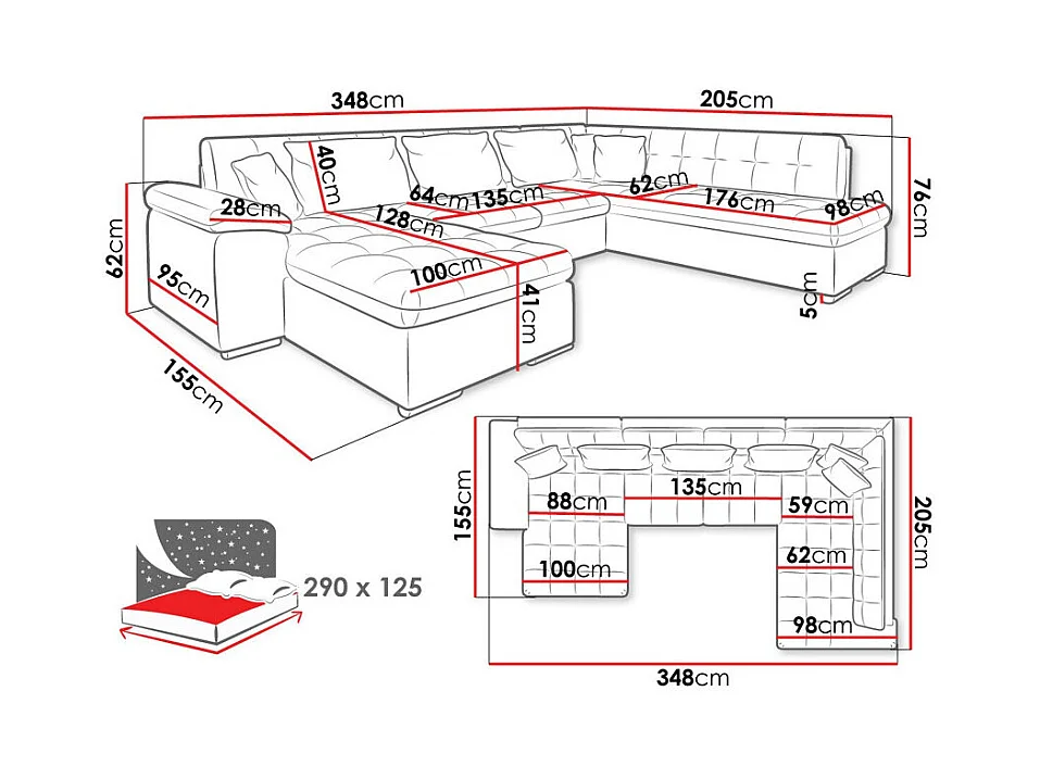 Canapé d'angle Comfivo 128, Gris, Fonction de couchage, 348x205x76cm