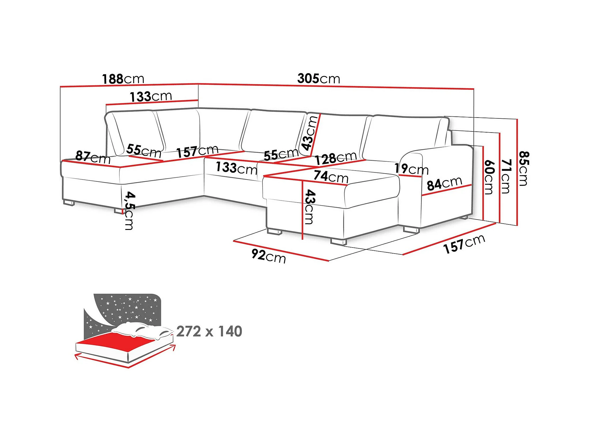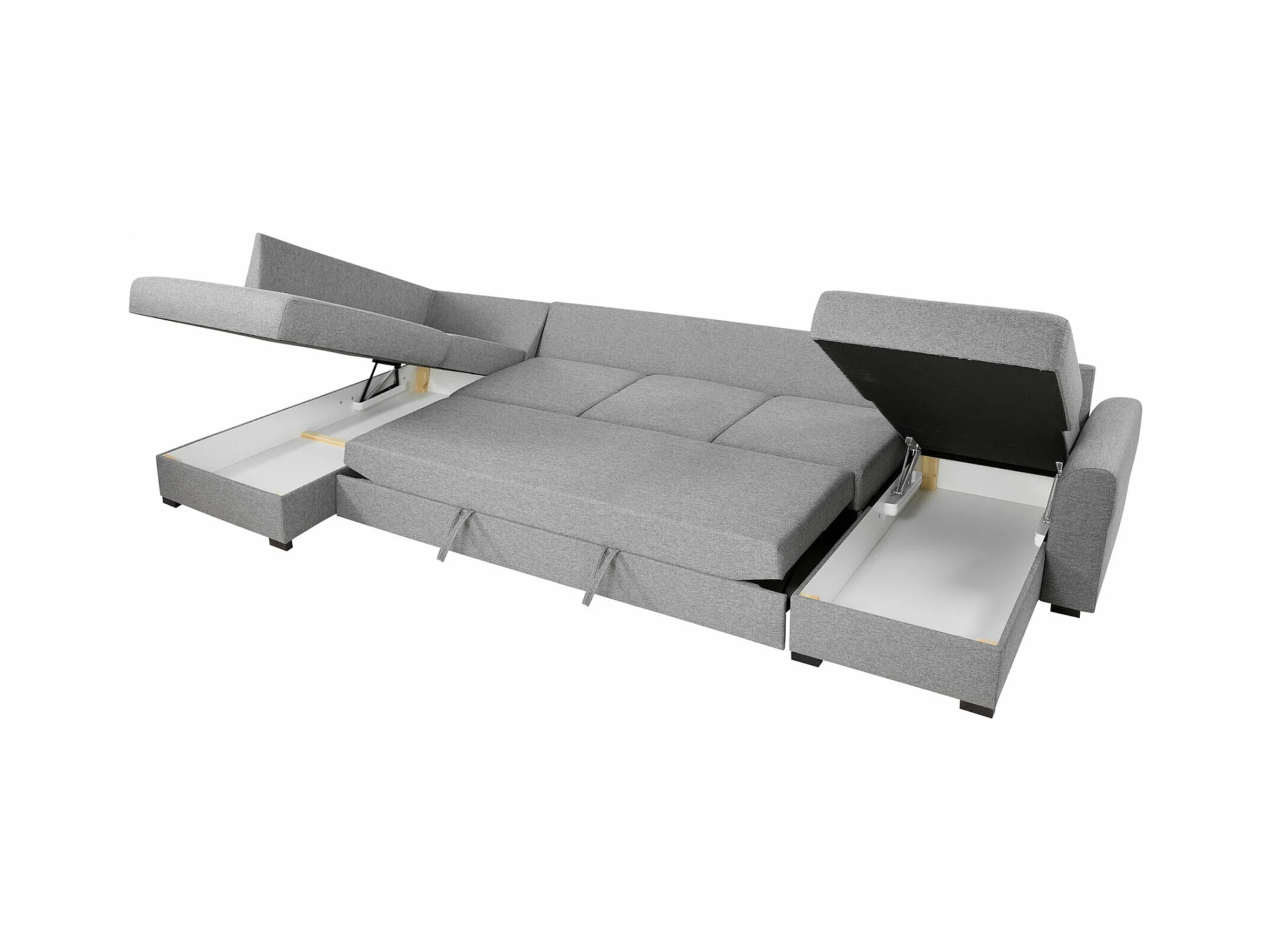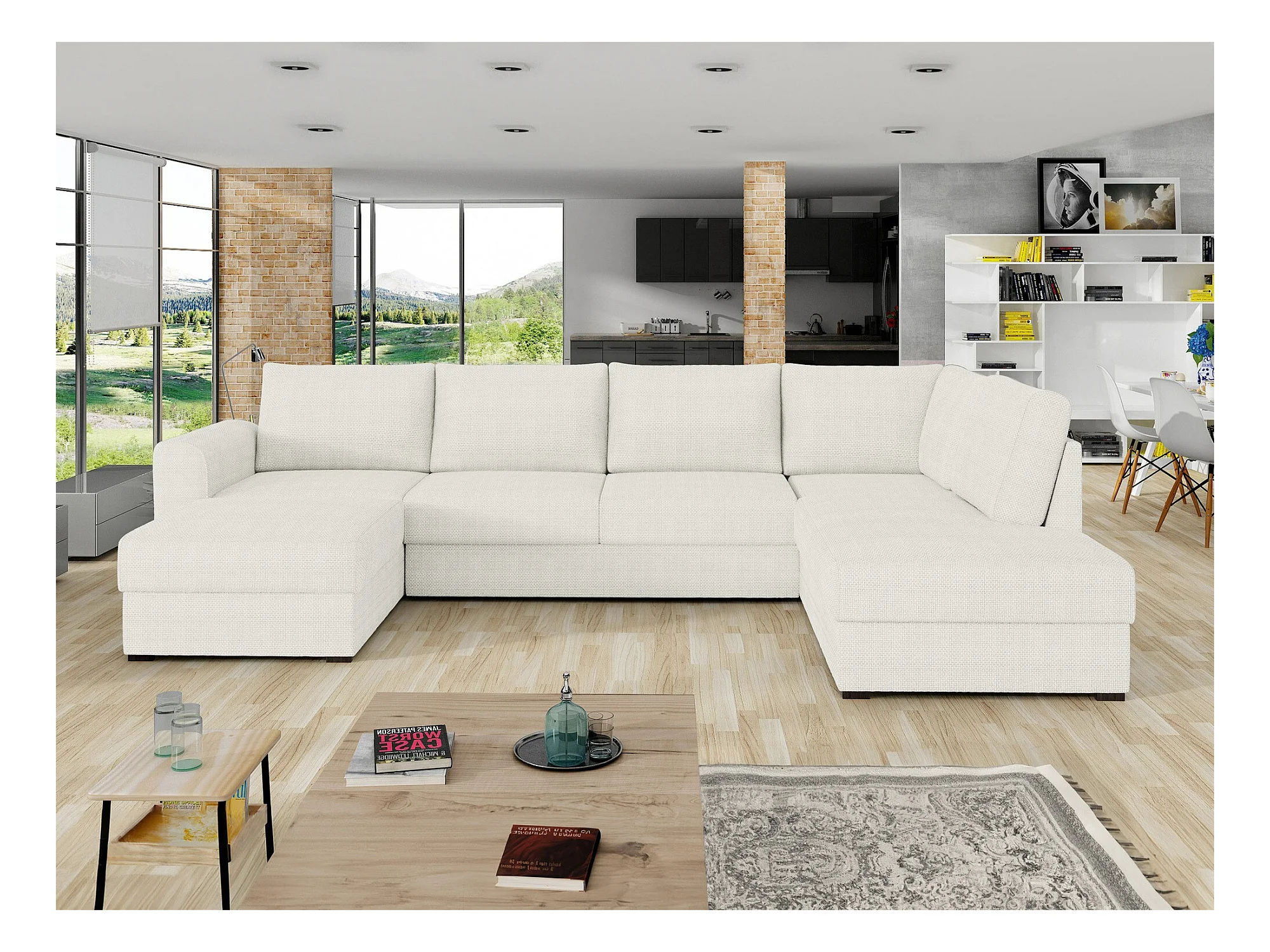 Canapé d'angle Comfivo 189, Blanc, Fonction de couchage, Boîte de literie, 305x188x85cm