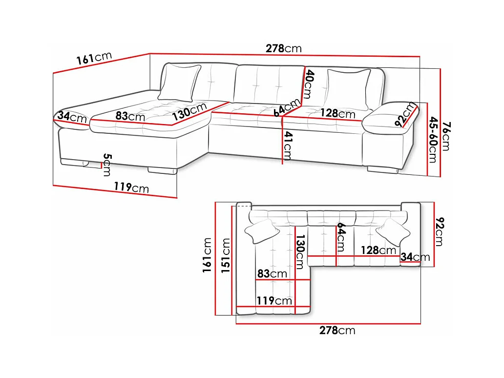 Canapé d'angle Comfivo 219, Vert, 278x161x76cm