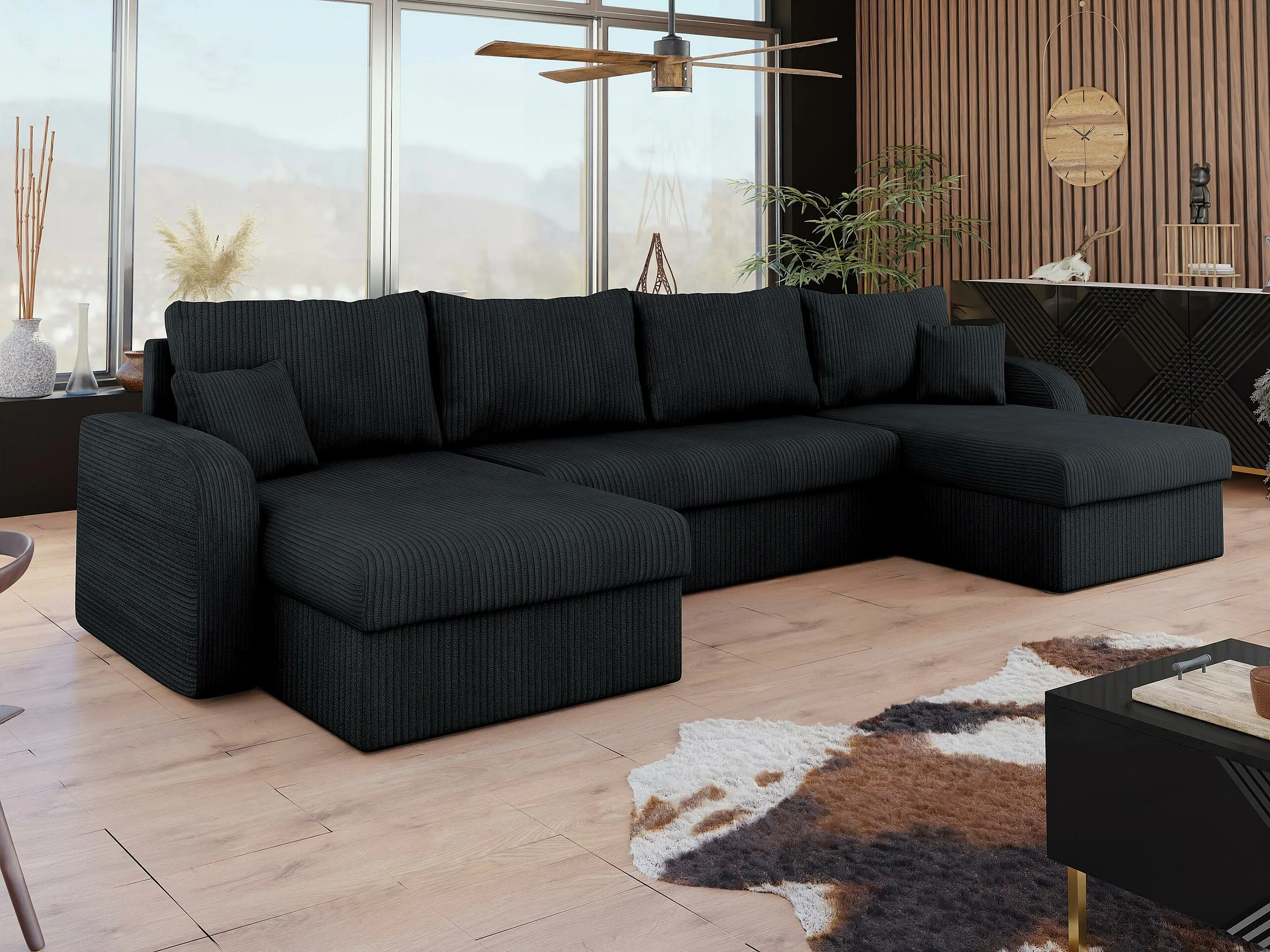 Canapé d'angle Comfivo 233, Gris, Disponible, 304x140x80cm