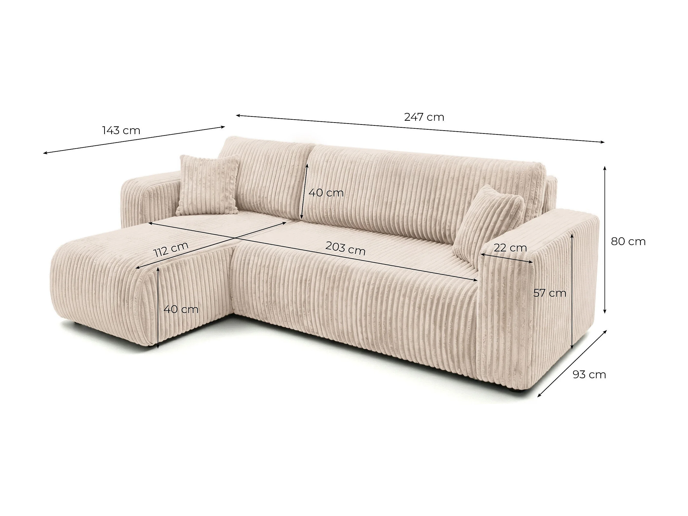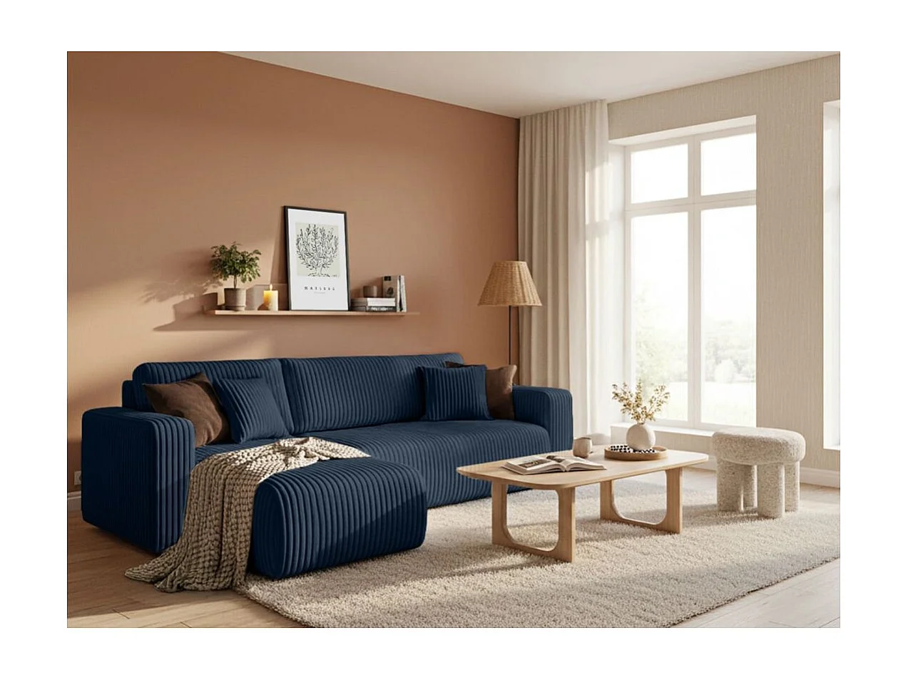 Canapé d'angle conv et réversible 4p ALYA velours cotelé épais Bleu foncé