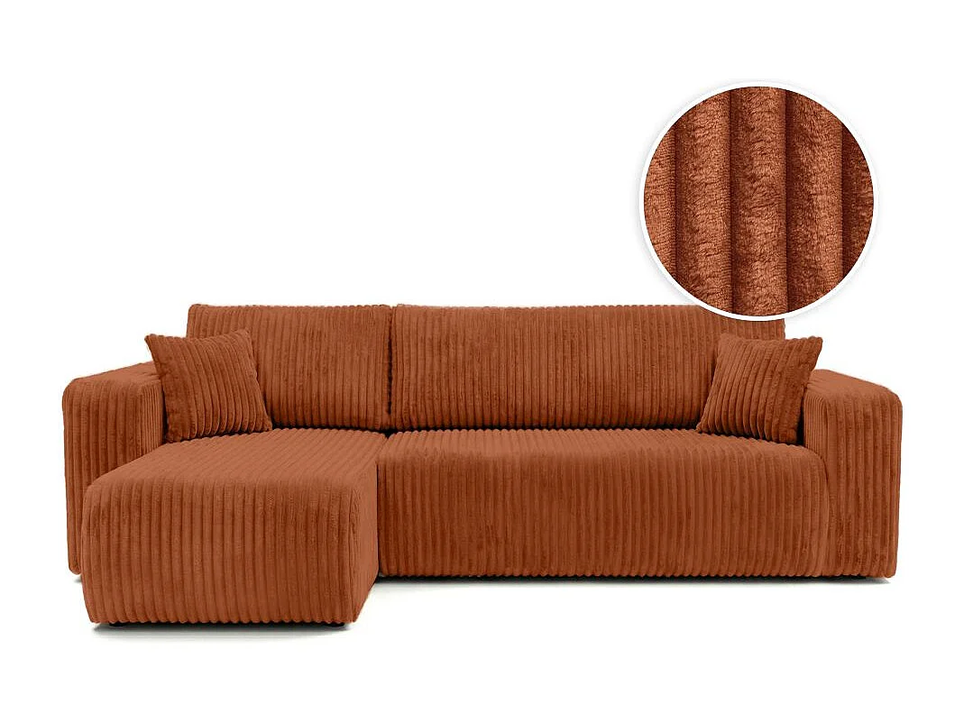 Canapé d'angle conv et réversible 4p ALYA velours cotelé épais Terracotta