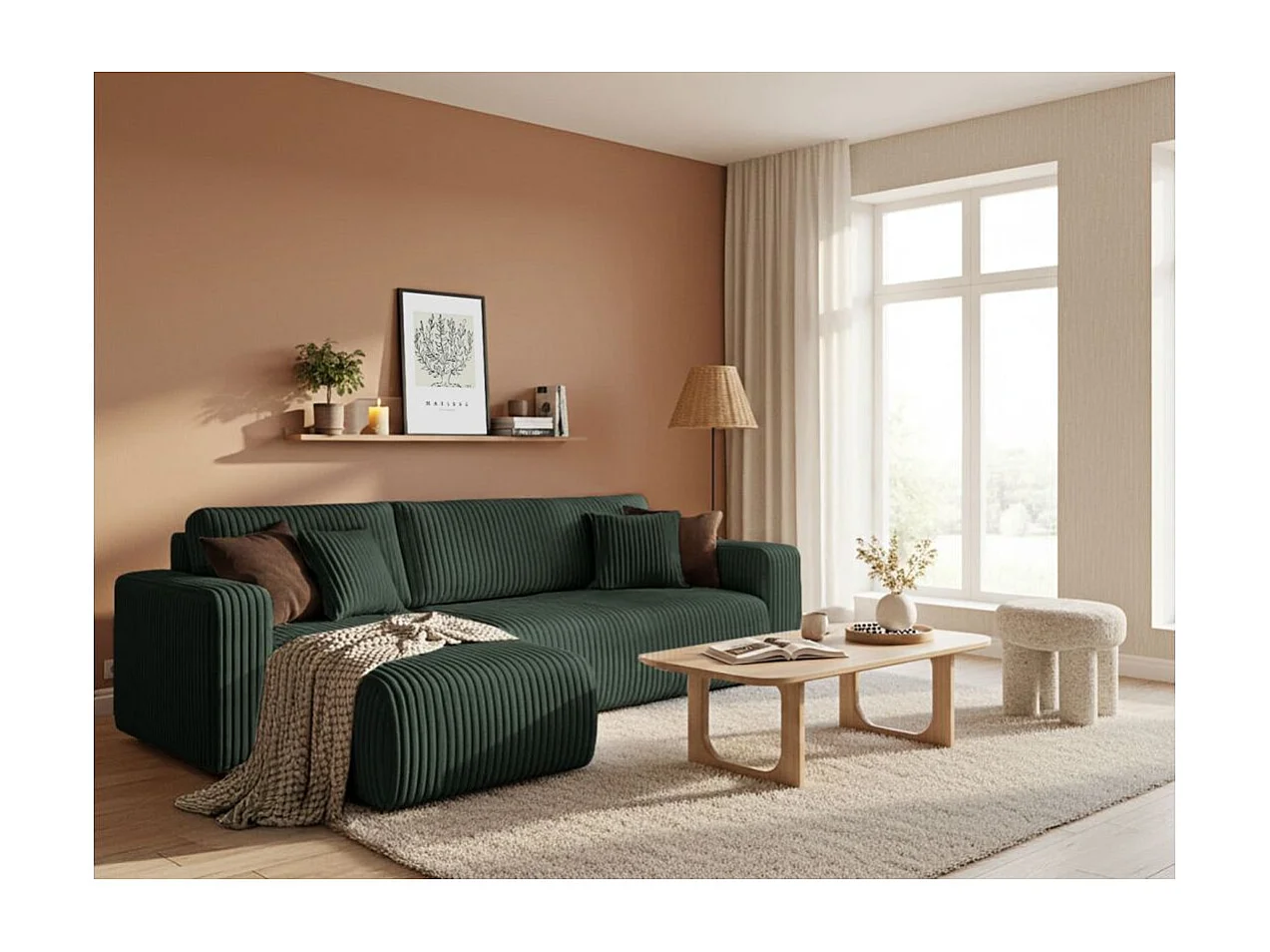 Canapé d'angle conv et réversible 4p ALYA velours cotelé épais Vert foncé