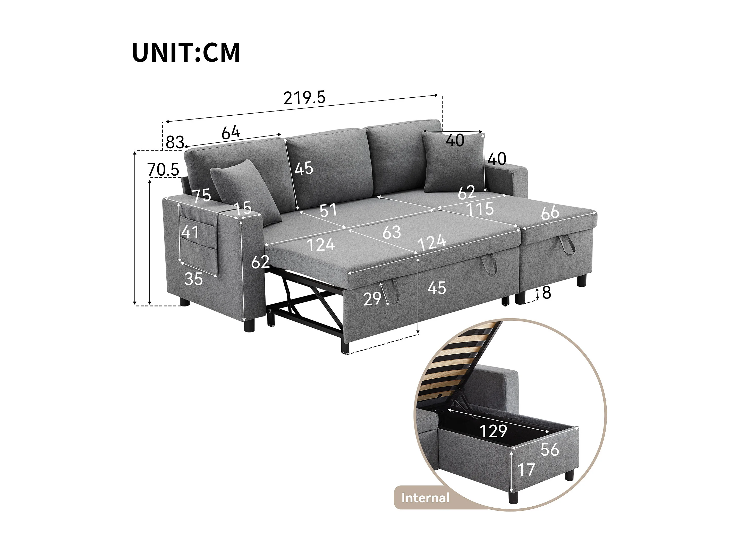 Canapé d'angle convertible 219.5x142.5x83 cm avec Fonction de rangement en gris pour salon