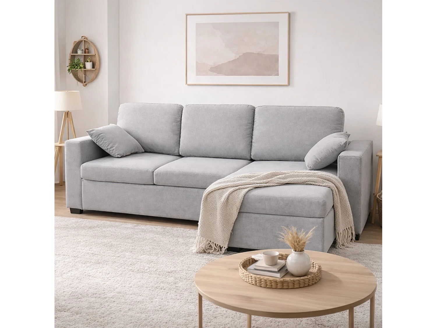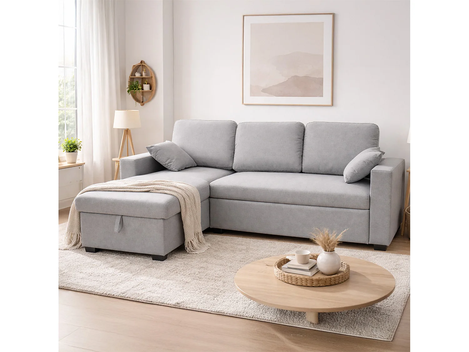 Canapé d'angle convertible 3 places avec coffre en tissu gris CELBRIDGE