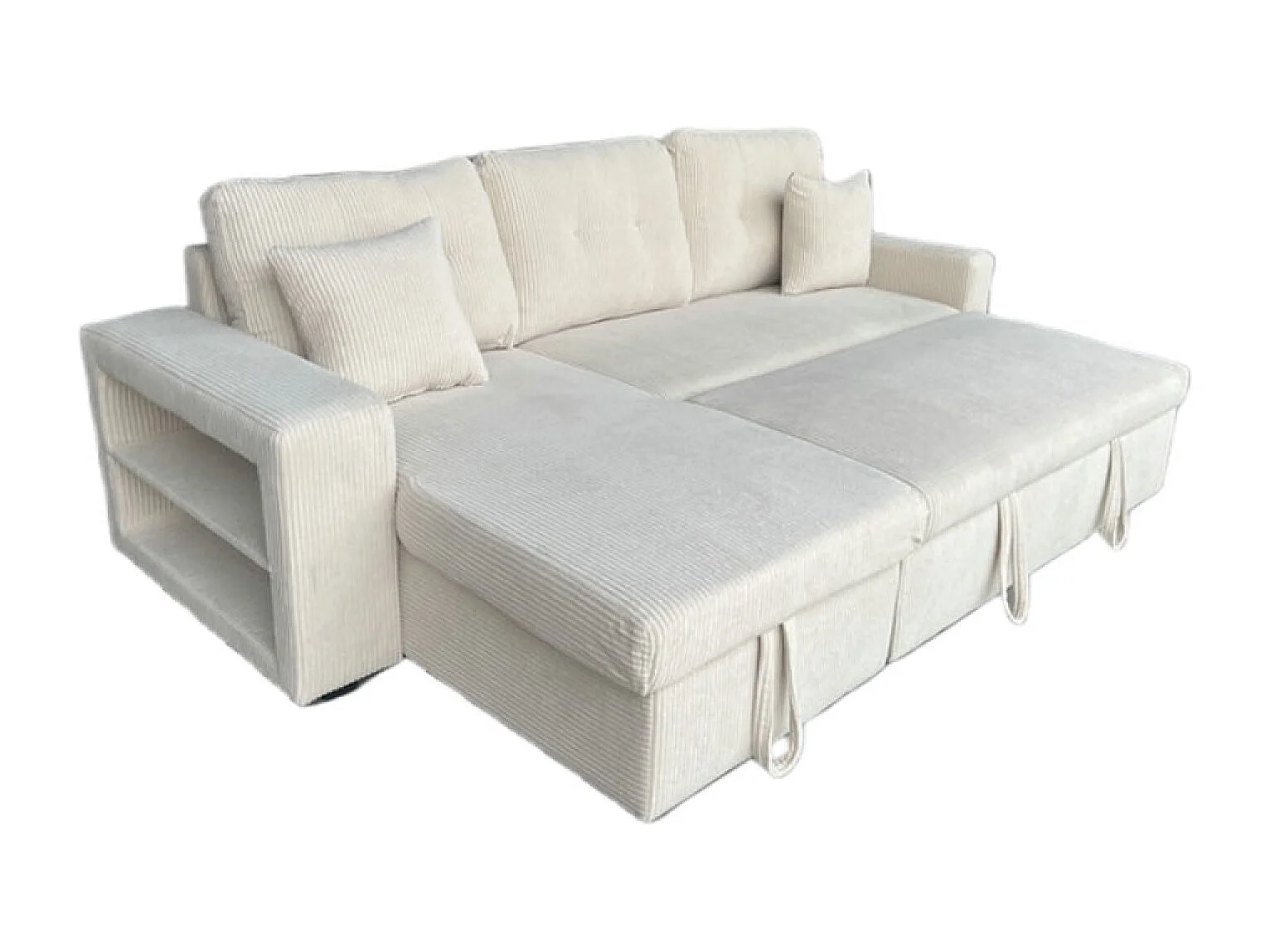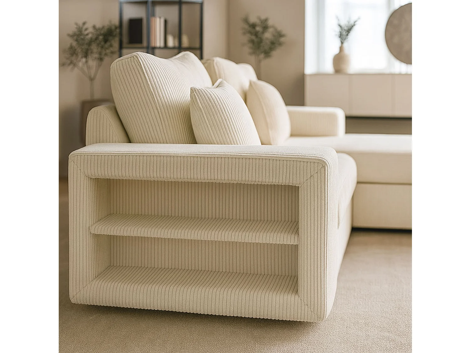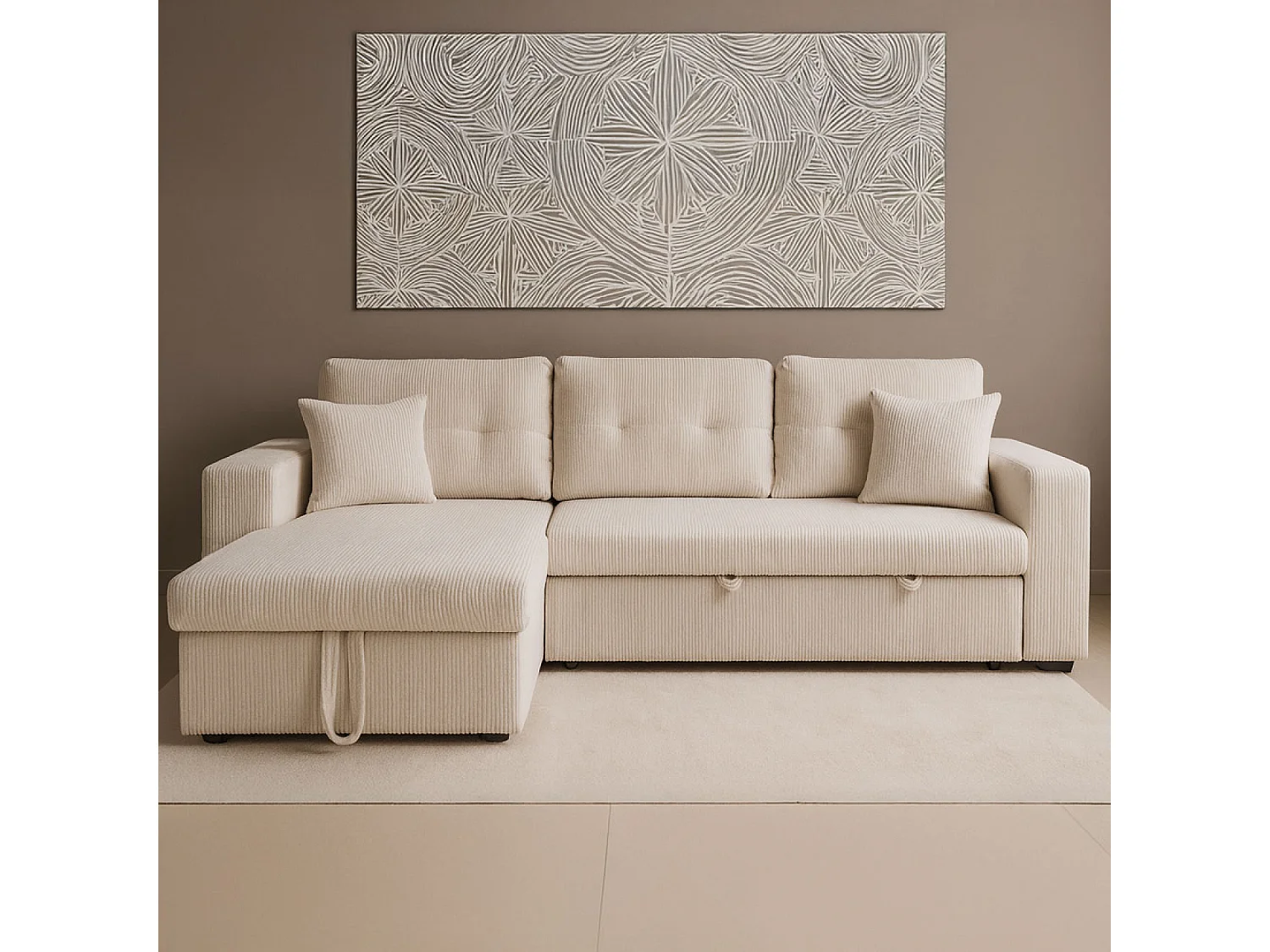 Canapé d'angle convertible 4 places avec coffre en velours côtelé beige GLASGOW