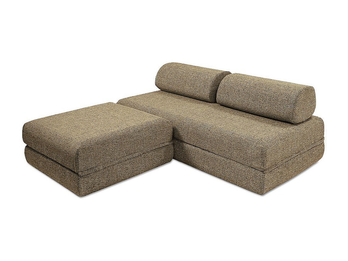 Canapé d'angle modulable et convertible 4 places - Tissu tweed - Jaune