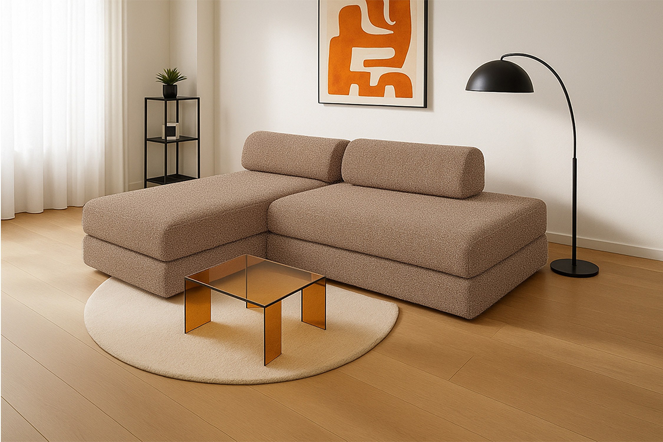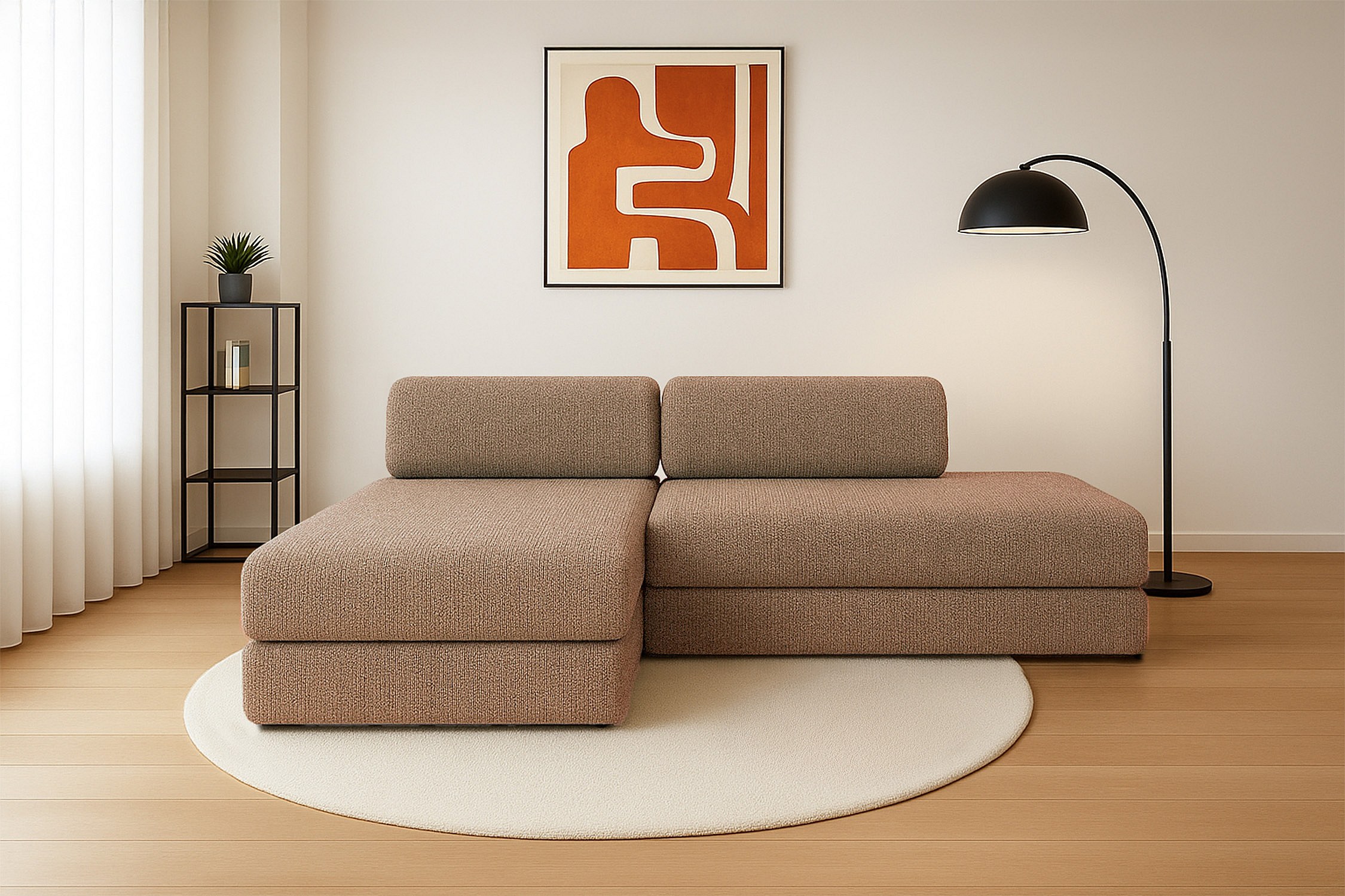 Canapé d'angle modulable et convertible 5 places - Tissu tweed - Marron