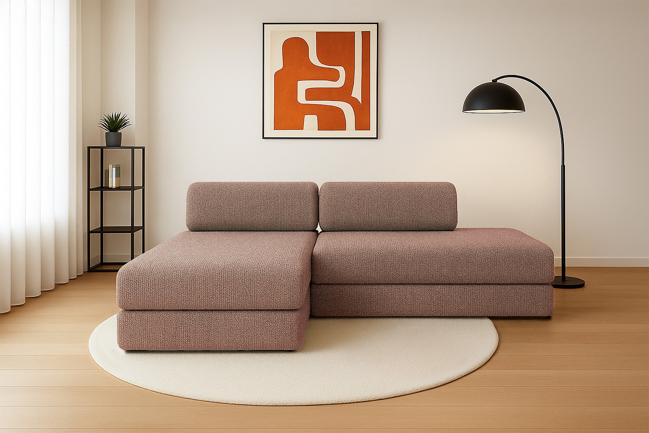 Canapé d'angle modulable et convertible 5 places - Tissu tweed - Rouge