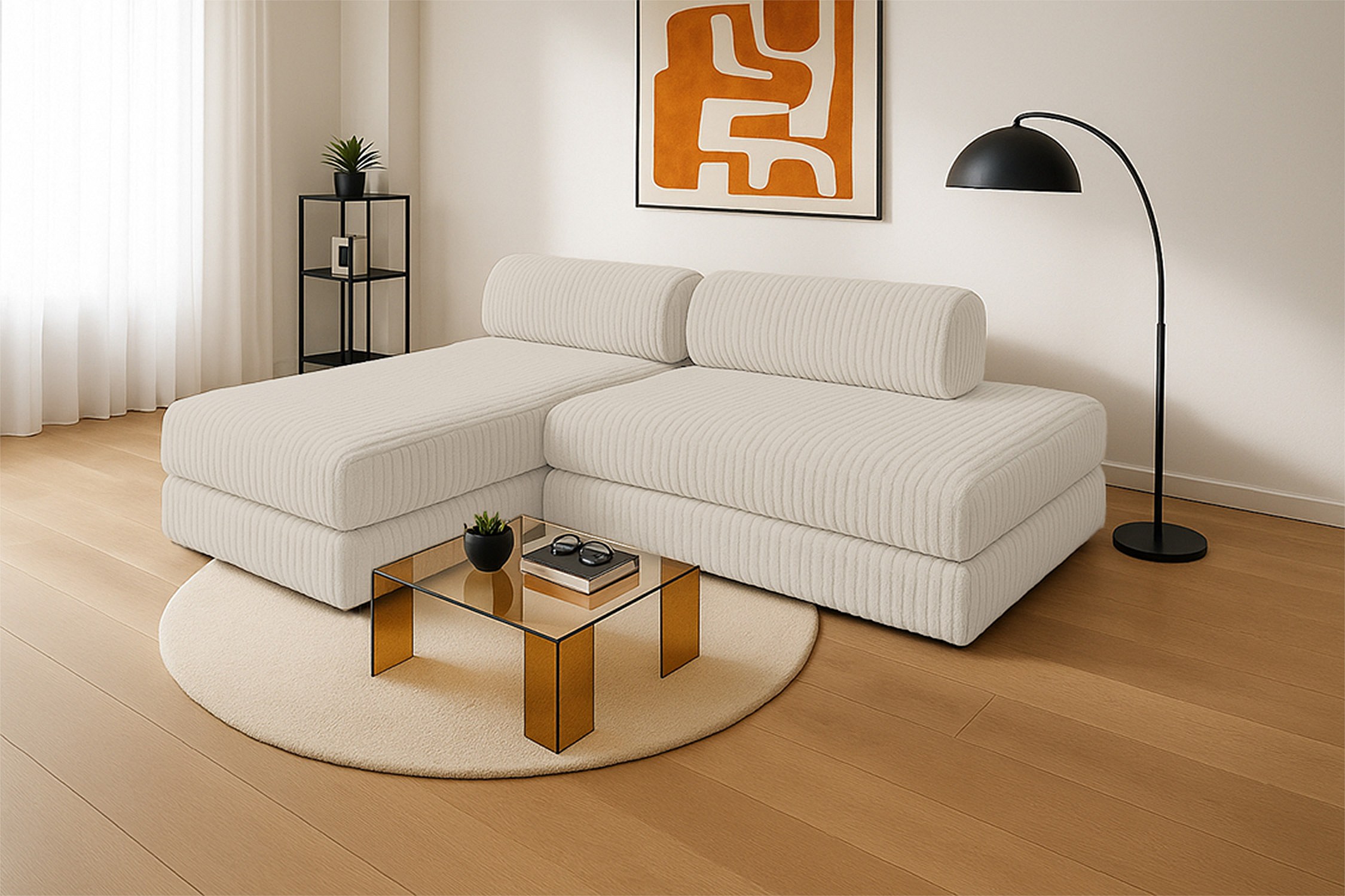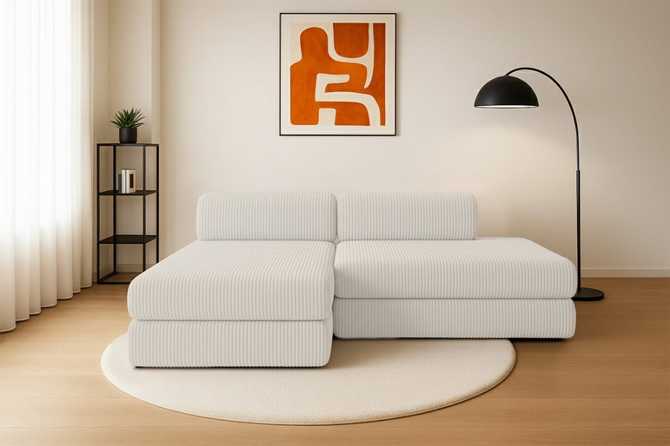 Canapé d'angle modulable et convertible 5 places - Velours côtelé XL - Blanc