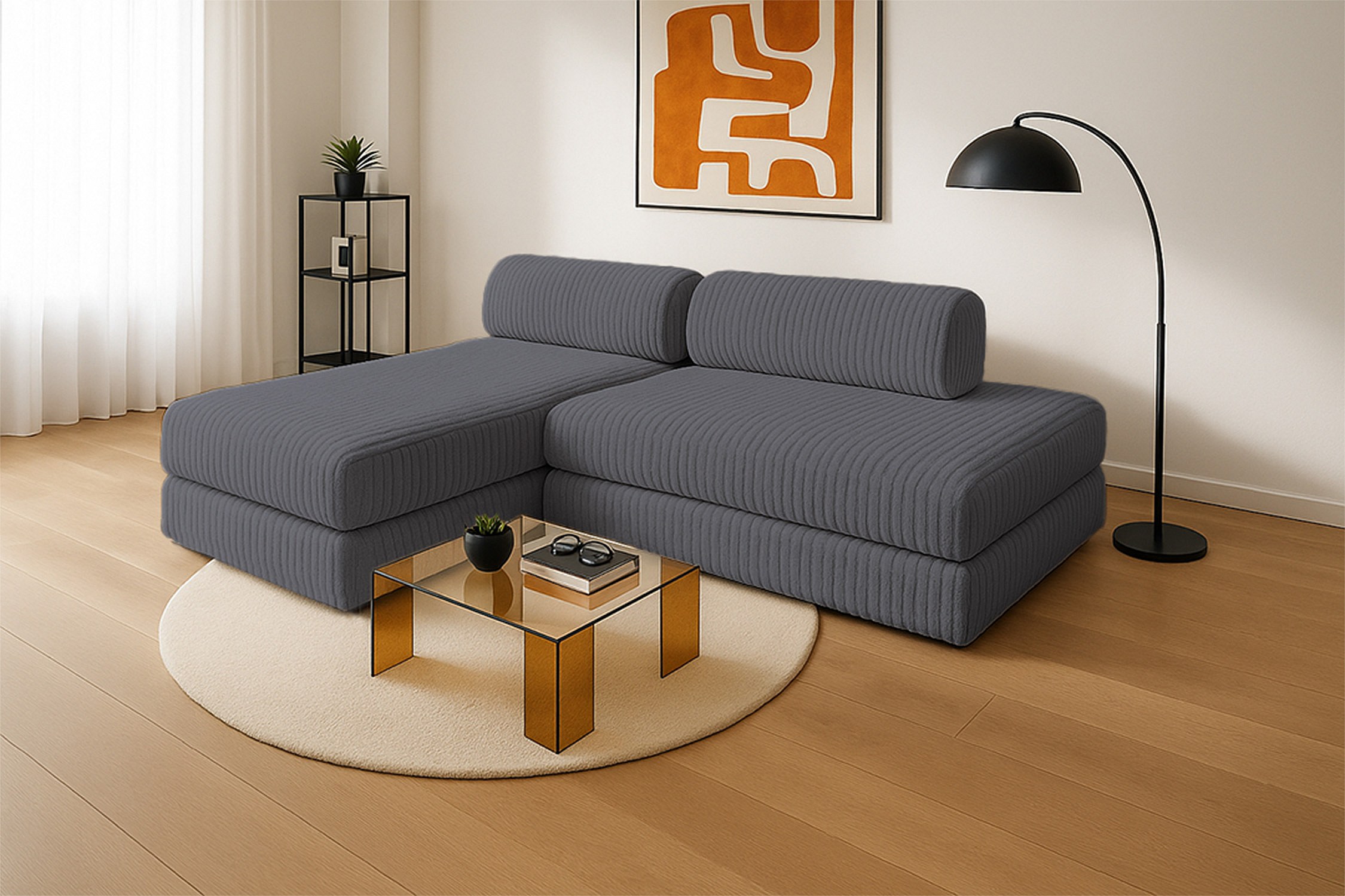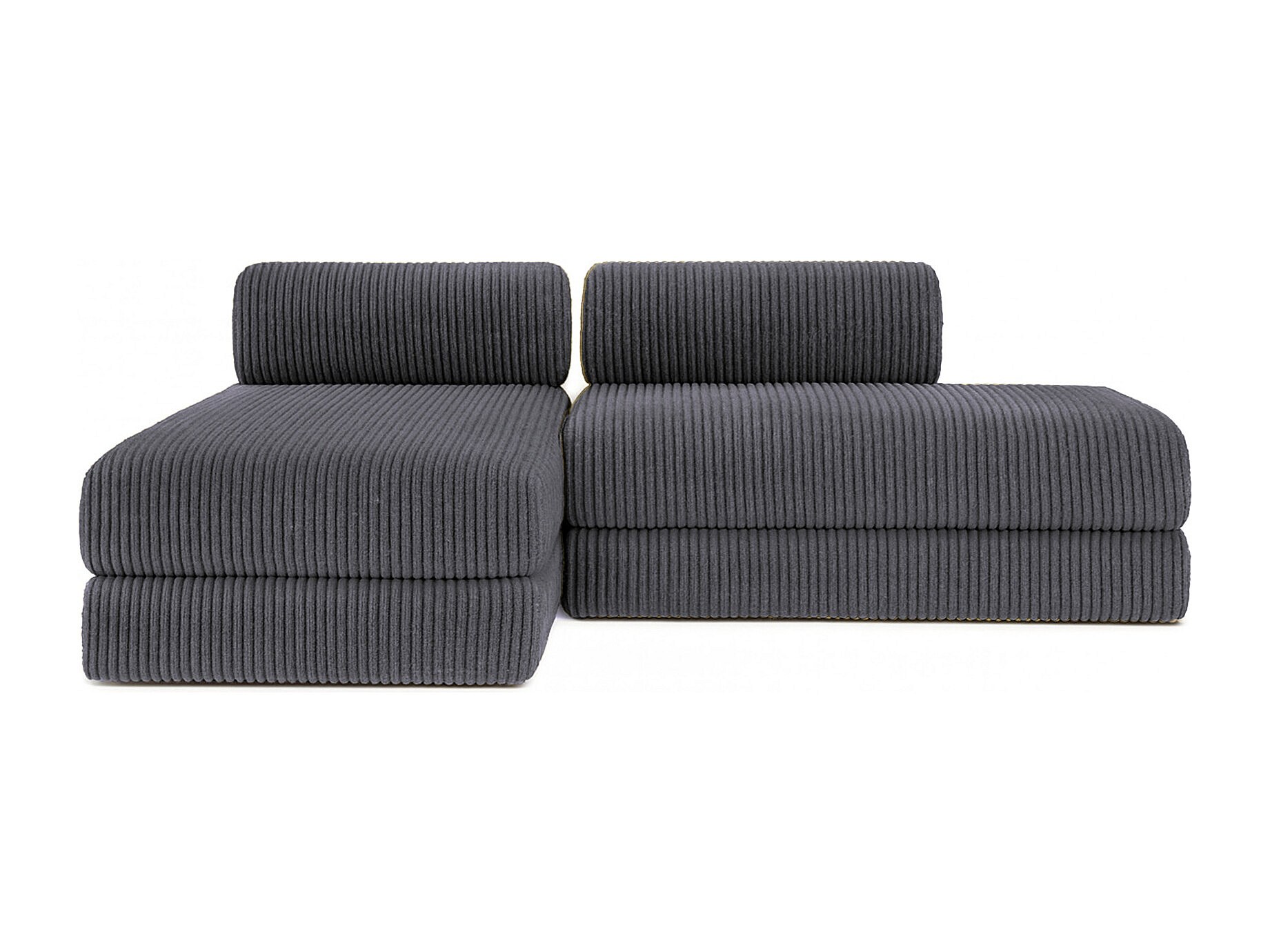 Canapé d'angle modulable et convertible 5 places - Velours côtelé XL - Gris