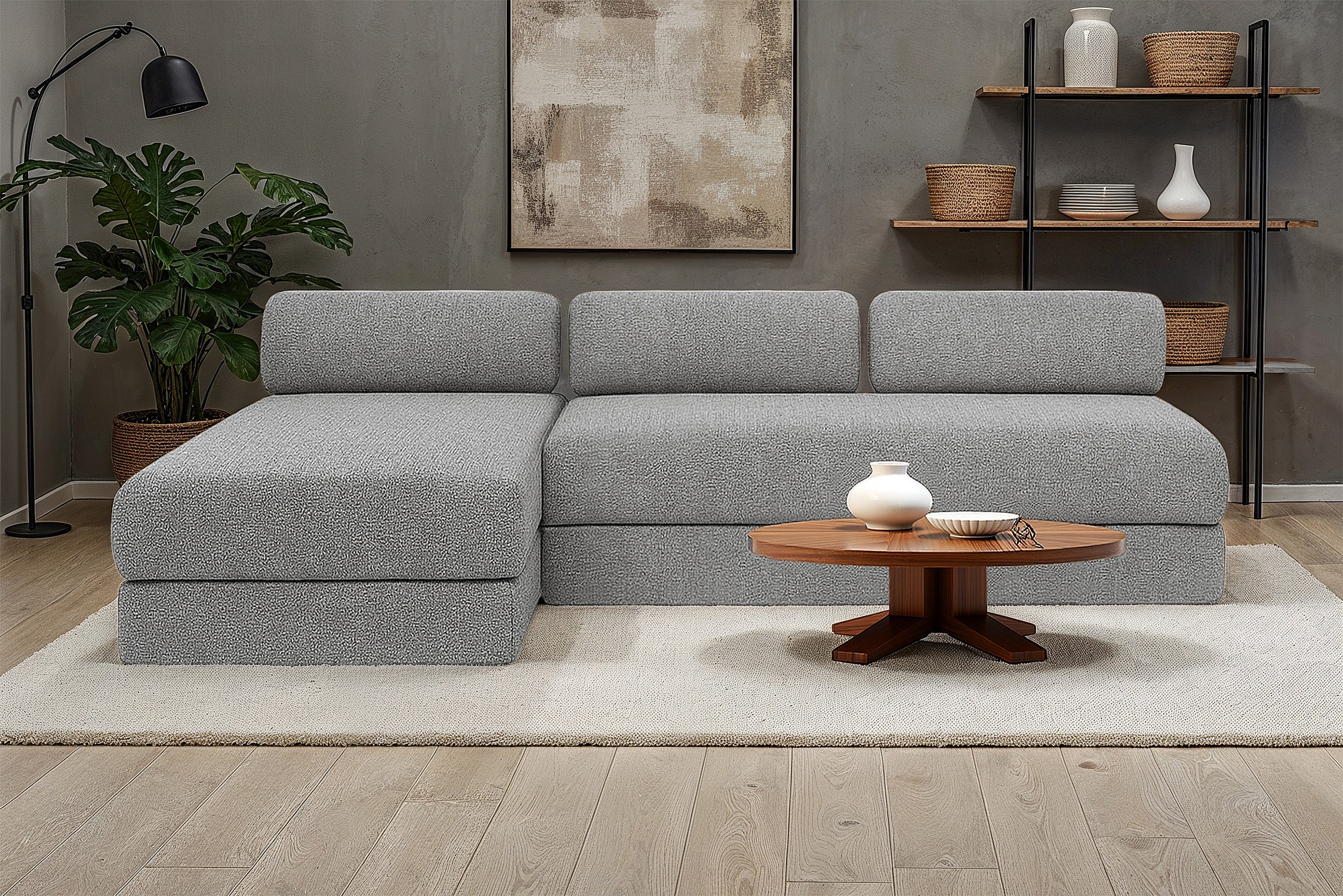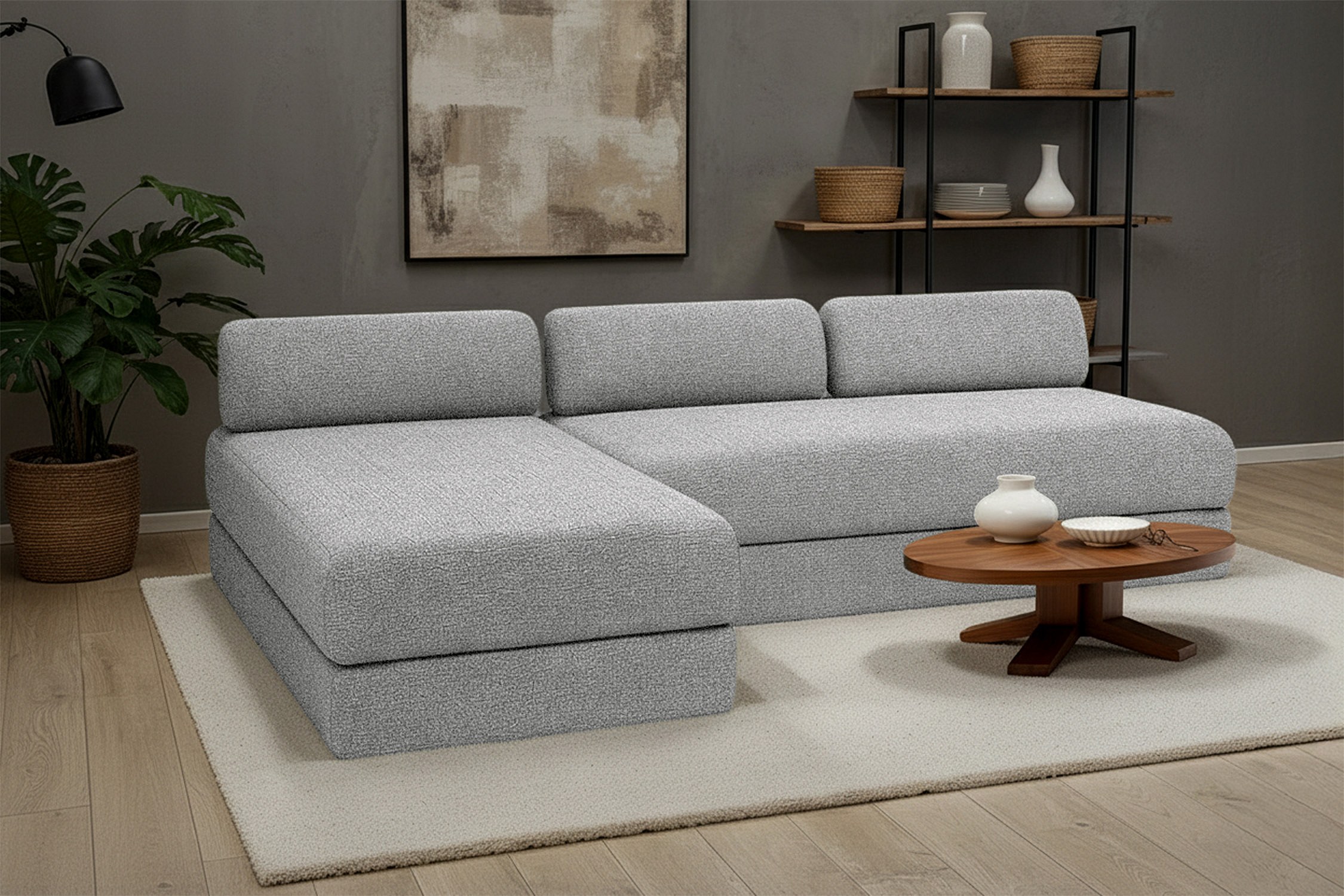 Canapé d'angle modulable et convertible 6 places - Tissu tweed - Gris