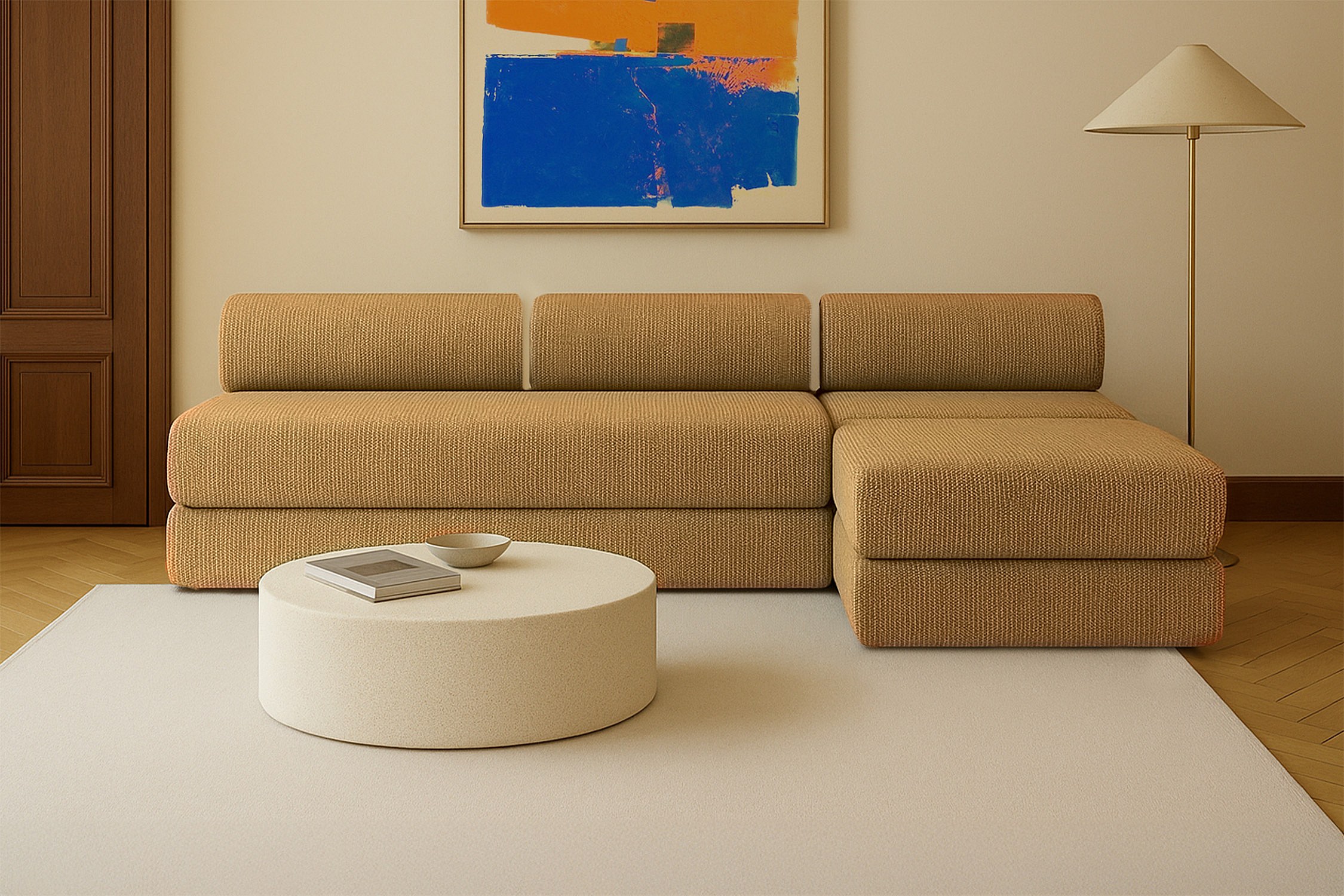 Canapé d'angle modulable et convertible 6 places - Tissu tweed - Jaune