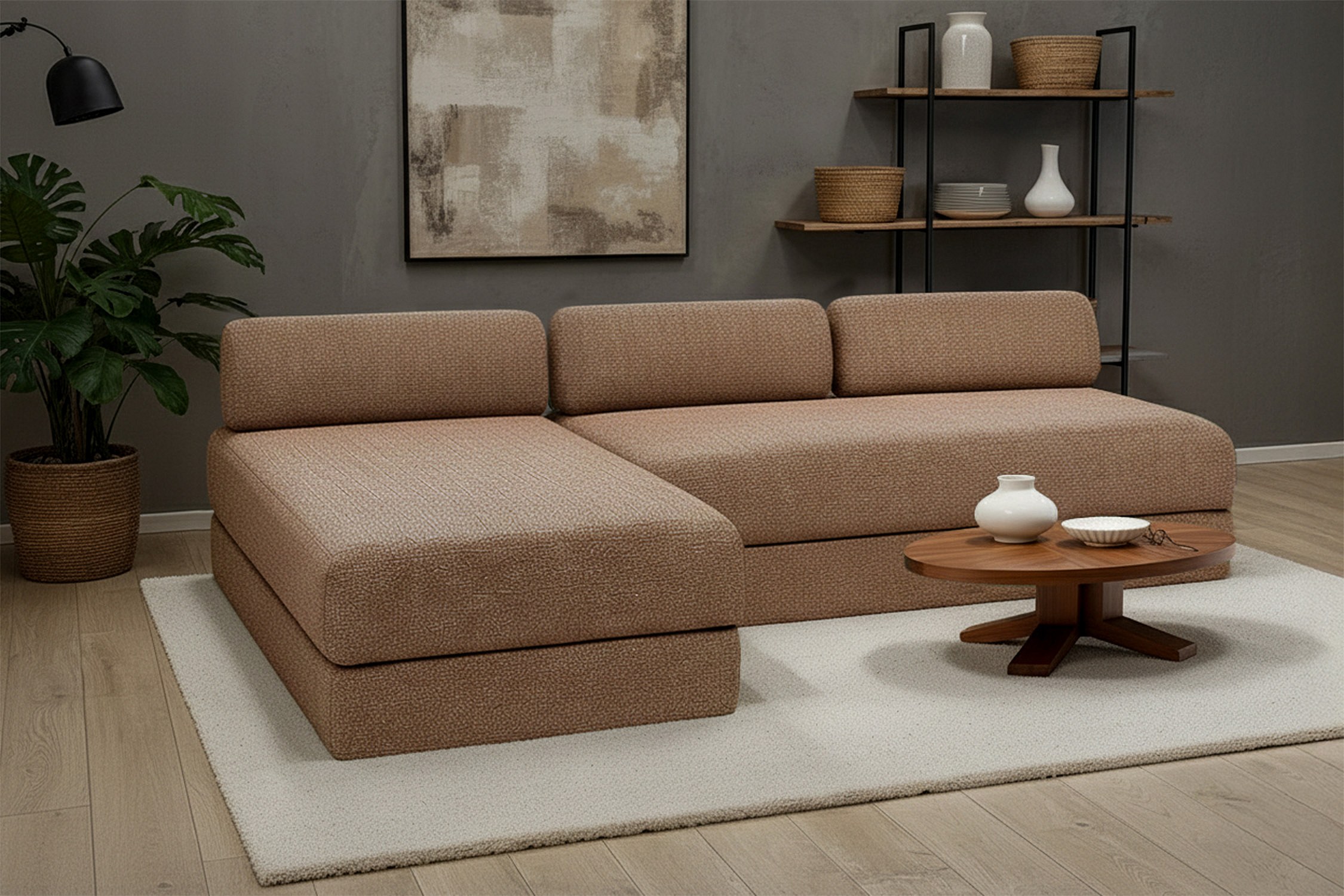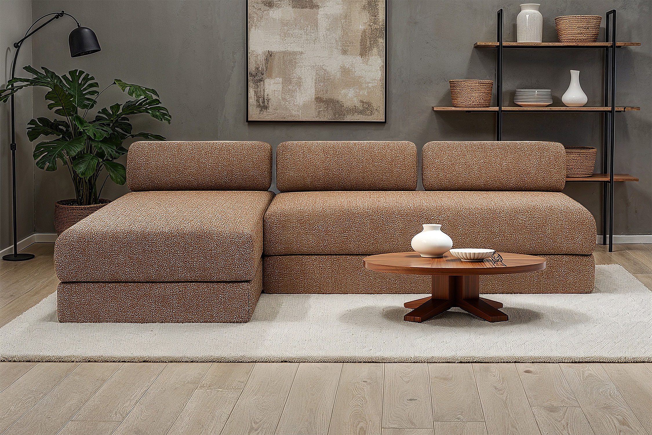 Canapé d'angle modulable et convertible 6 places - Tissu tweed - Marron